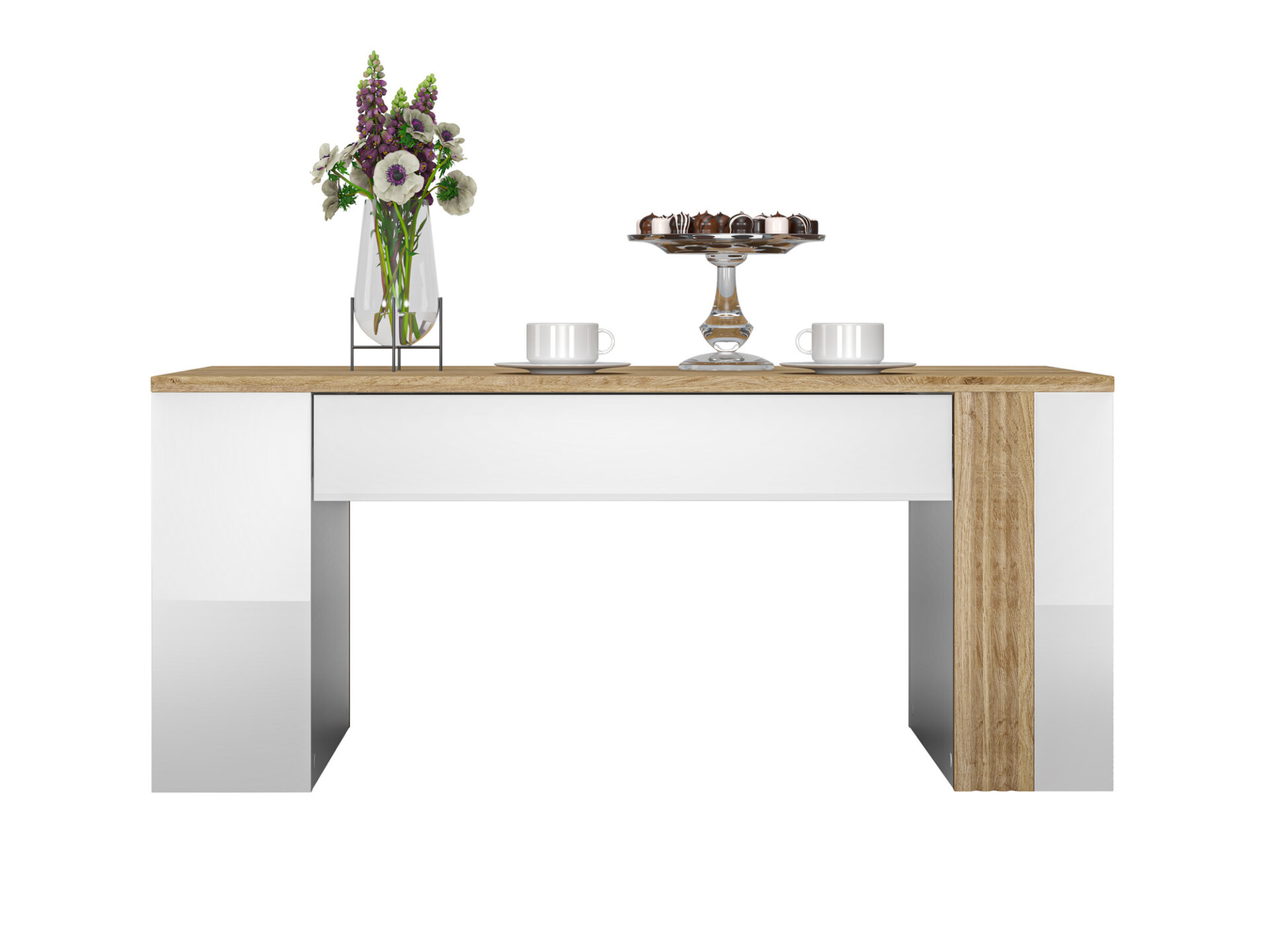 The Adagio 10 coffee table is a perfect addition to your living room. Placed centrally in the room, it will become an essential element of your interior. The over-meter-long tabletop provides ample space for coffee or tea sets and favorite magazines. A hidden drawer provides additional storage space for remote controls or documents. This piece combines functionality with elegant design. Rounded MDF fronts, deeply milled moldings in the same color as the body, and metal and chrome handles are the essence of the Adagio collection.