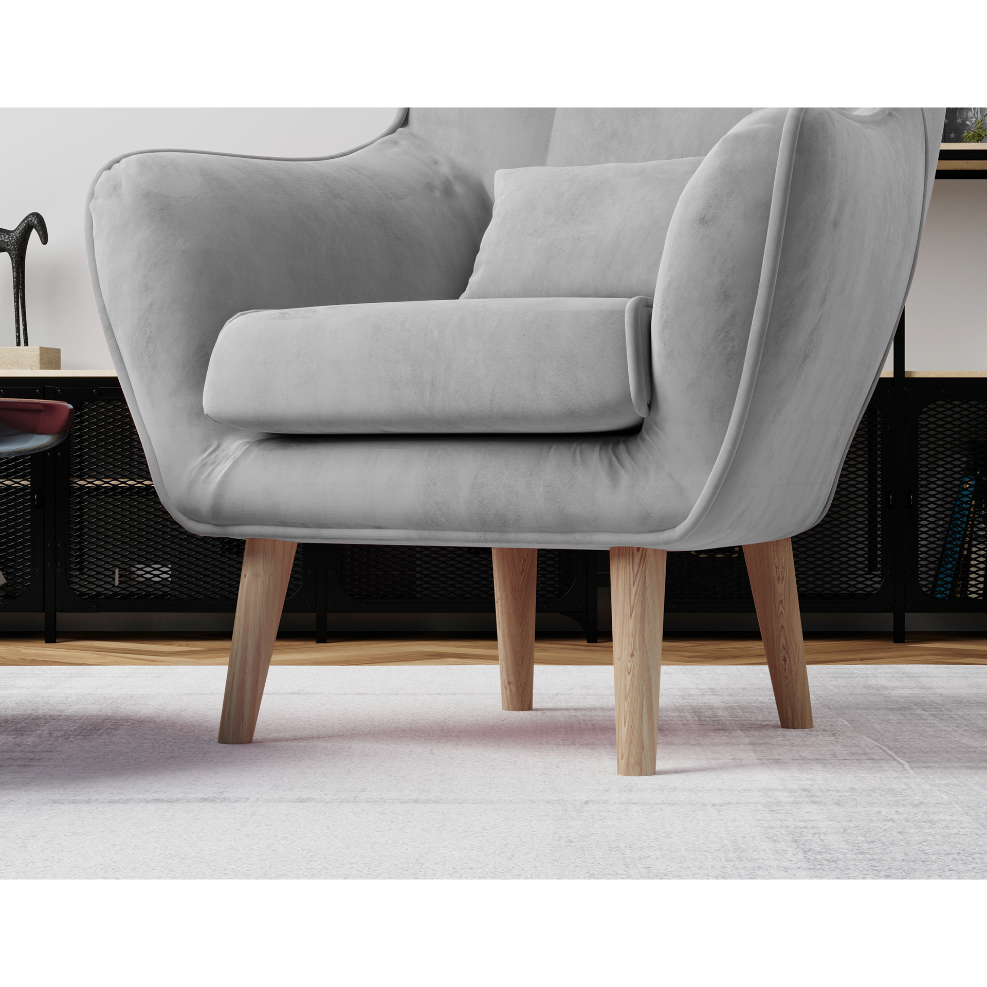 The Arti is a unique and elegant armchair measuring 80 x 91 x 105 cm, which will be a unique addition to any interior – whether bedroom or living room. The Arti model’s distinguishing features include an upholstered back, contoured backrest, and high armrests. However, its true character comes from the 22-centimeter wooden legs, the included cushion, and the stylish tufting on the backrest. The Arti armchair offers a wide range of color options. The product is available in all fabrics from the BalduMarket collection. The type of seat and backrest filling is also noteworthy. The combination of HR foam and T25 foam creates an exceptional comfort experience while protecting the spine. The Arti is a unique armchair that is sure to turn heads. We recommend exploring our product.
