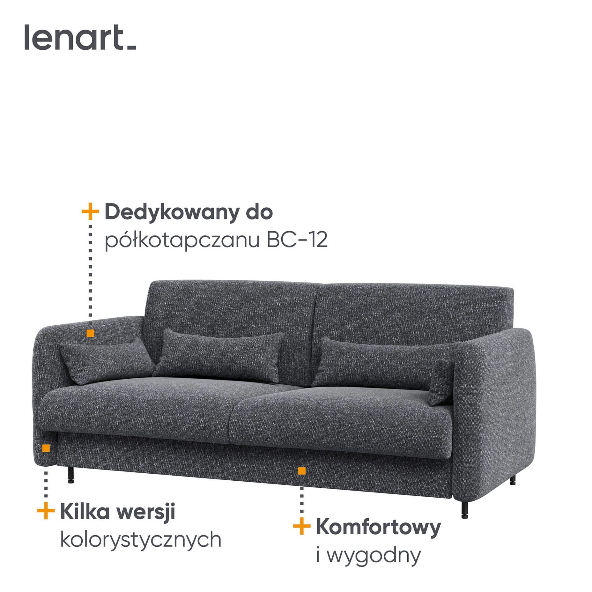The Lenart BED CONCEPT BC-19 Sofa 160 cm is an elegant and functional addition to the gray BC-12 murphy bed. This set offers a solution that will transform your living room into a comfortable bedroom in a matter of moments. Lenart created the BC-19 model for those who value modern style and a practical approach to interior design. The sofa is upholstered in ART 82630 fabric in a shade of graphite, giving the piece a distinctive and timeless look. The combination of a gray front and a graphite sofa creates an elegant set that easily adapts to contemporary interiors. It’s the perfect solution for small apartments and studios, where a single piece of furniture fulfills multiple functions without compromising on comfort or aesthetics.