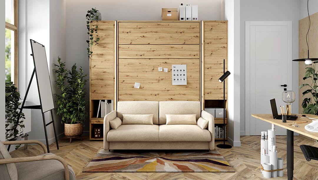 The Lenart BED CONCEPT LED-BCBDA is an LED lighting set with a diffuser in an artisan oak finish, designed specifically for the BC-01 and BC-12 wall beds from the BED CONCEPT collection. This practical and aesthetic solution enhances the comfort of the furniture and provides an elegant finish to the entire set. The Lenart BED CONCEPT LED-BCBDA is particularly recommended when the wall bed is combined with a sofa and an extension unit – in this configuration, installing a diffuser is necessary to avoid collisions between the extension unit’s drawer and the sofa’s sides. LED lighting with a diffuser provides even, pleasant light, making the wall bed easy to use in the evening and at night, while also adding a cozy atmosphere to the interior. The artisan oak diffuser creates a cohesive and elegant overall look, especially in spaces dominated by natural wood finishes. The product is made of durable materials and energy-efficient LEDs, ensuring reliability, low power consumption, and long life. This functional and aesthetic addition enhances the BED CONCEPT system, giving it both practicality and decorative character.
