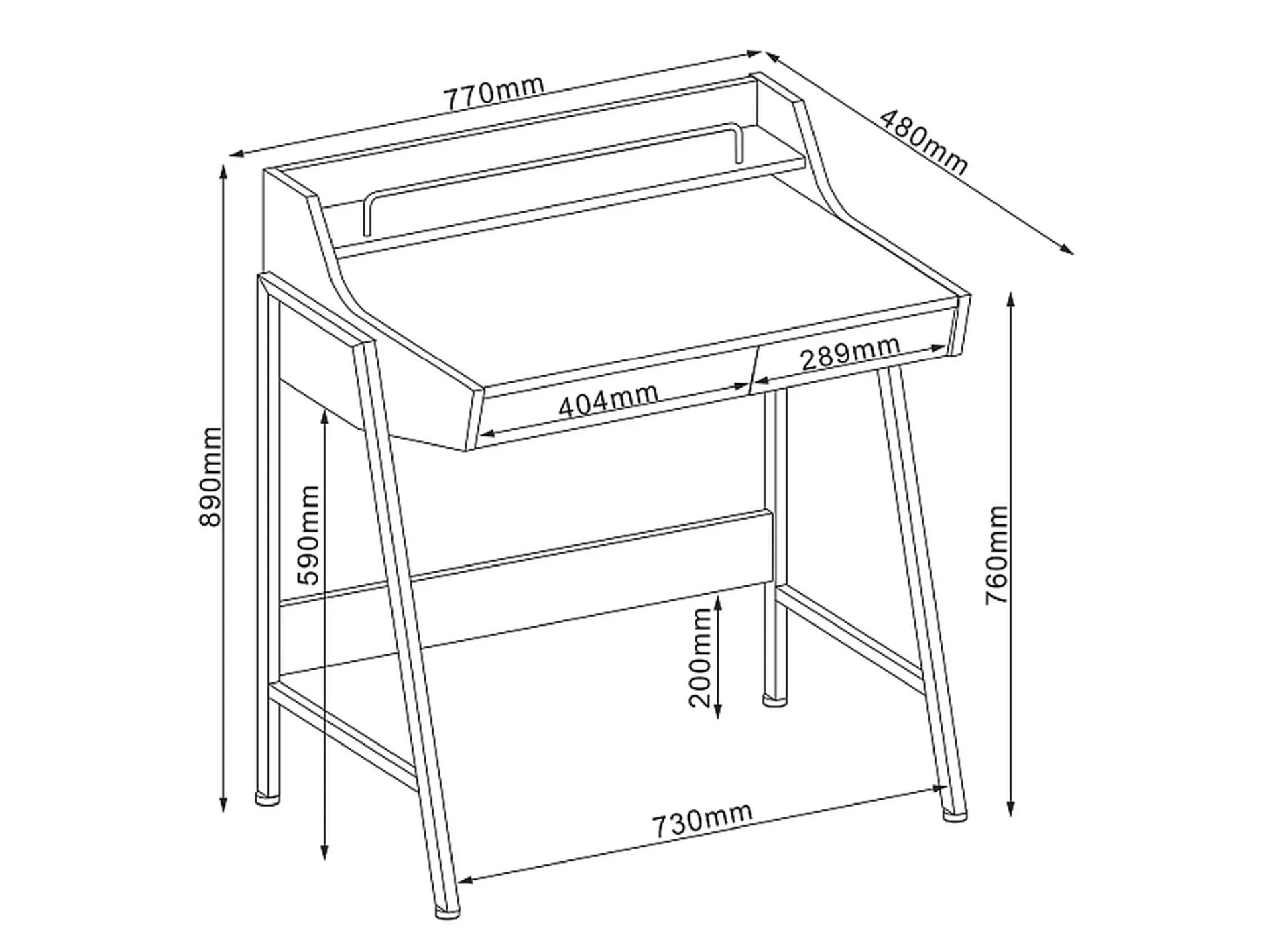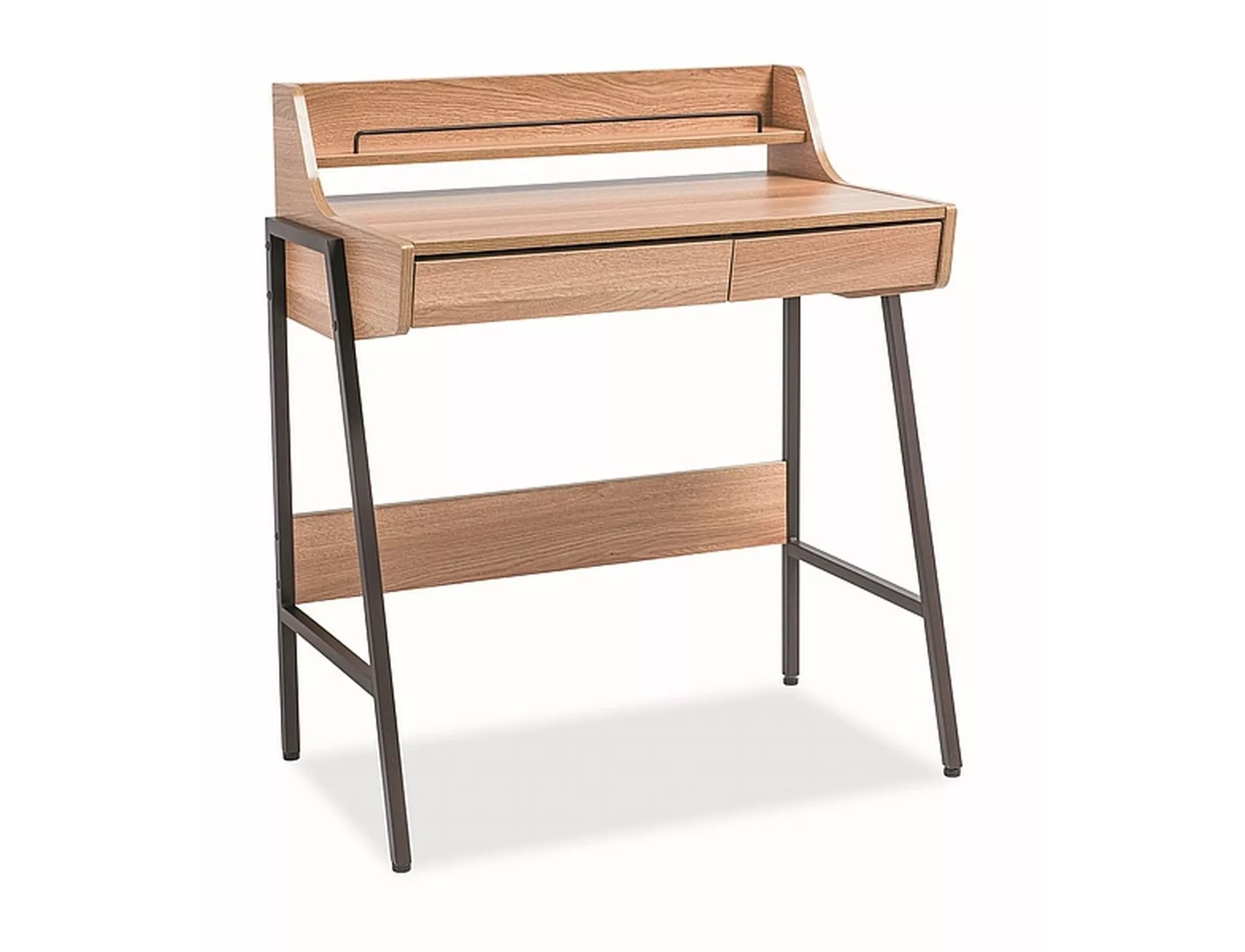 Desk, top: MDF, color: oak, frame: metal, color: dark brown. Drawer height: 6cm.