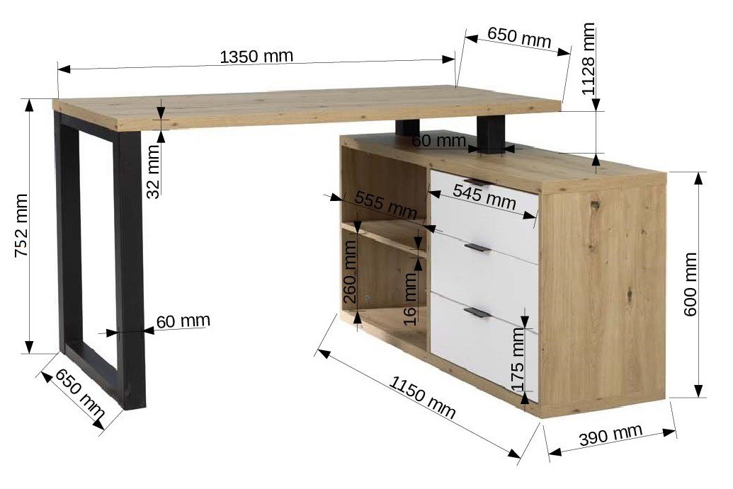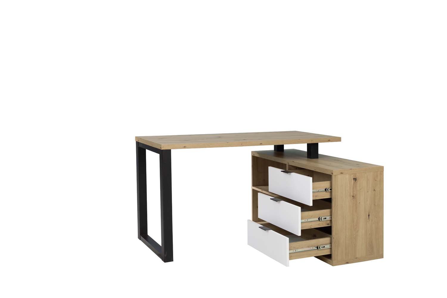 The MARO II corner desk is perfect for a youth room, office, or studio. Its corner design allows it to fit even in small spaces. Equipped with three drawers and a spacious shelf, it provides ample space for storing office supplies. The MARO II desk is an easy-to-use and versatile piece of furniture that will fit into most interiors.