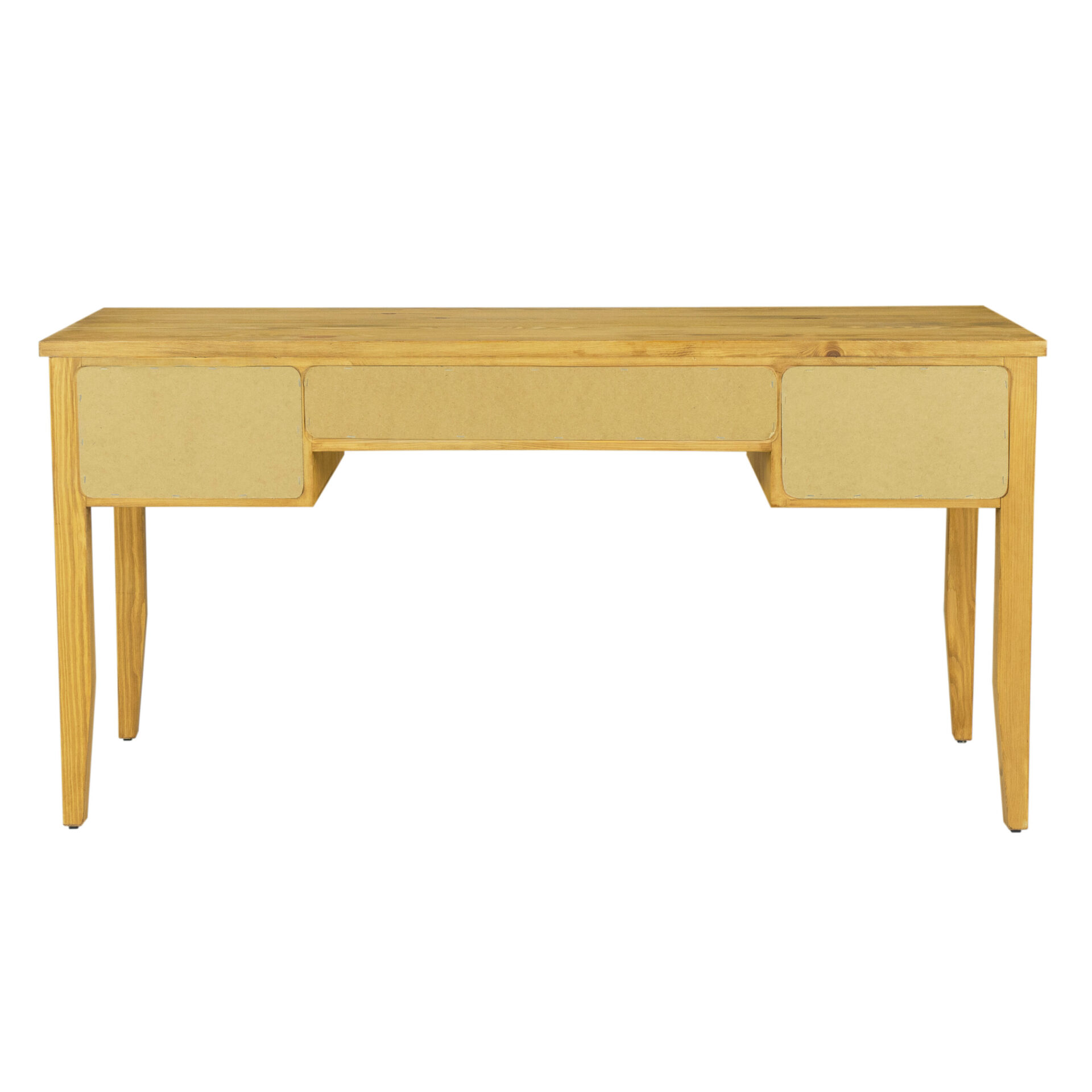 The BR706 pine desk is made of solid pine wood with a wax finish. It features a natural finish and a minimalist, timeless design. It features three practical drawers that provide ample space for storing documents, office accessories, and other essentials. Subtle handles add charm, while the solid construction ensures durability and stability. The wax finish highlights the natural grain of the wood, making the desk both functional and aesthetically pleasing in any interior.