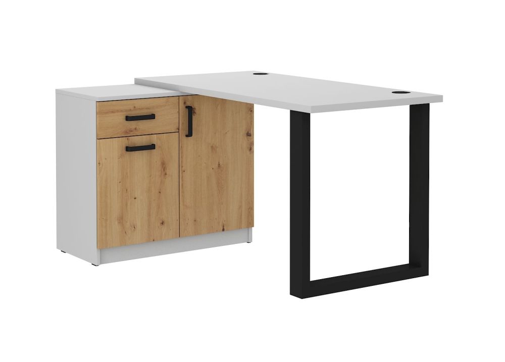 Malta 130 Desk with Chest of Drawers – The desk has a metal base, two cabinets, and a drawer.