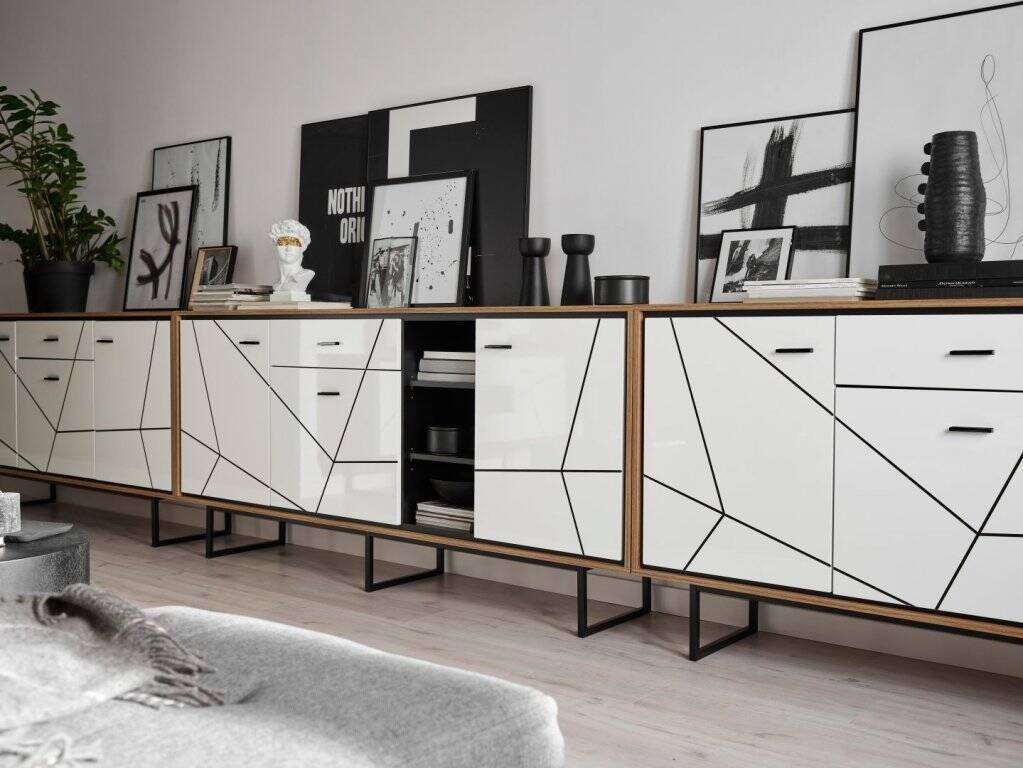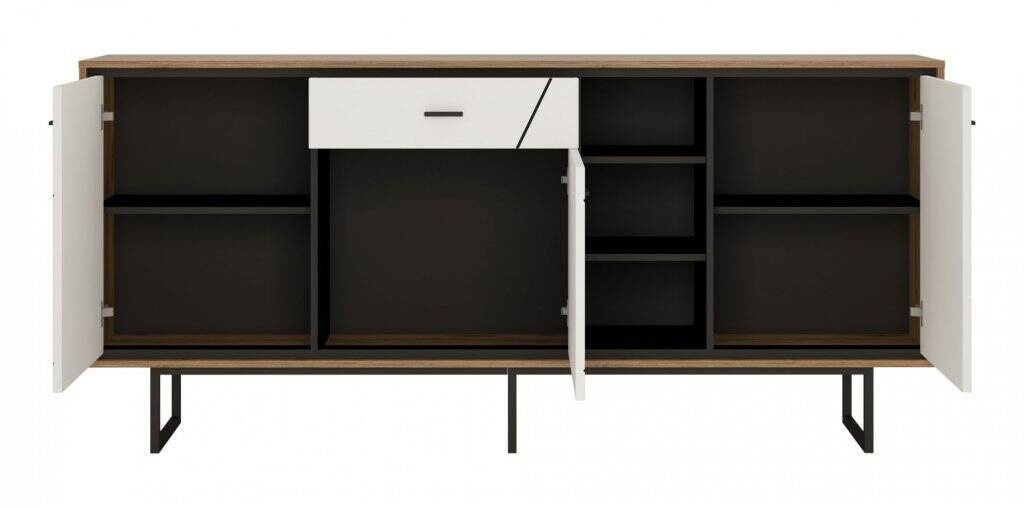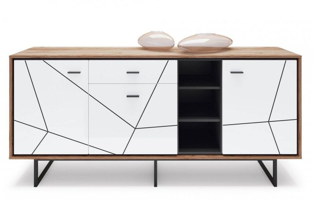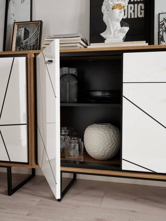 Looking for a chest of drawers that will bring style, functionality, and modern design to your interior? The Brolo BROK06 – 3D1S Chest of Drawers in Catania Oak/Black Pearl/White is a piece of furniture that will meet all these expectations. Its exceptional capacity and elegant color scheme will make it a centerpiece in any room. Measuring an impressive 197.3 cm wide, it features a thoughtful combination of colors and materials. The chest of drawers impresses with its depth of 40 cm and height of 90.3 cm, making it not only a decorative element but also an exceptionally practical addition to your home. The glossy white fronts contrast with the natural shades of Catania Oak and the deep Black Pearl, giving the chest of drawers a unique character. Made of the highest quality laminated board and MDF, the Brolo BROK06 chest of drawers guarantees durability for years to come. The laminated chipboard body is solid and resistant to everyday use. The fronts are decorated with black-colored MDF boards covered with high-gloss PVC foil, which are not only visually beautiful but also easy to keep clean.