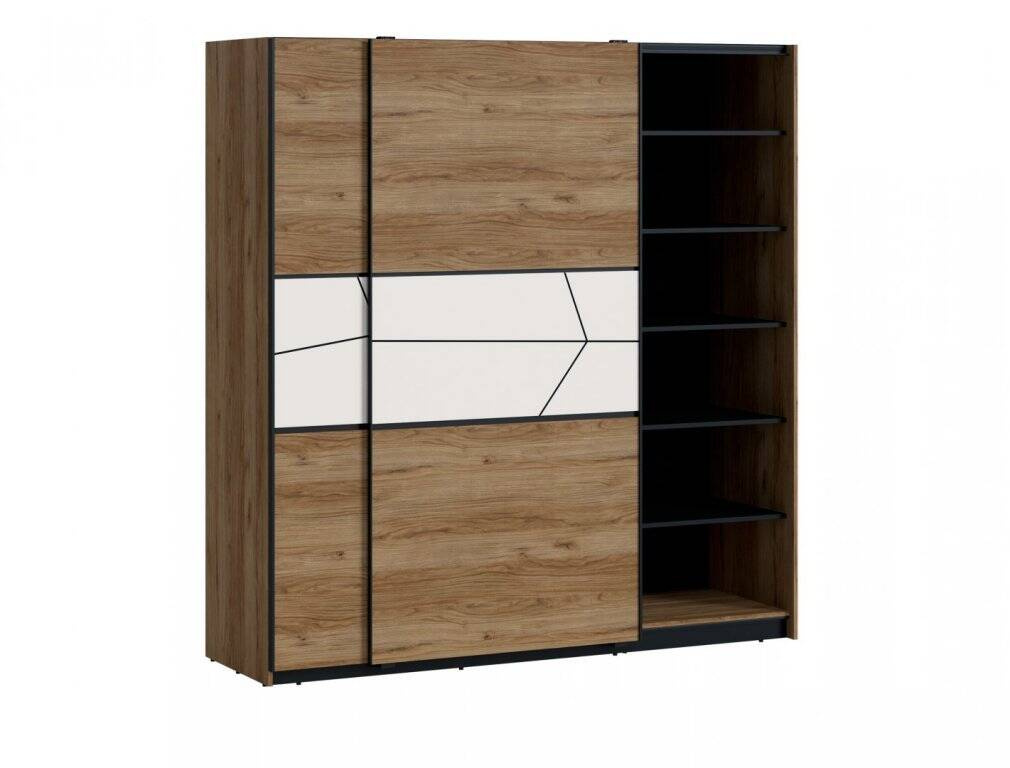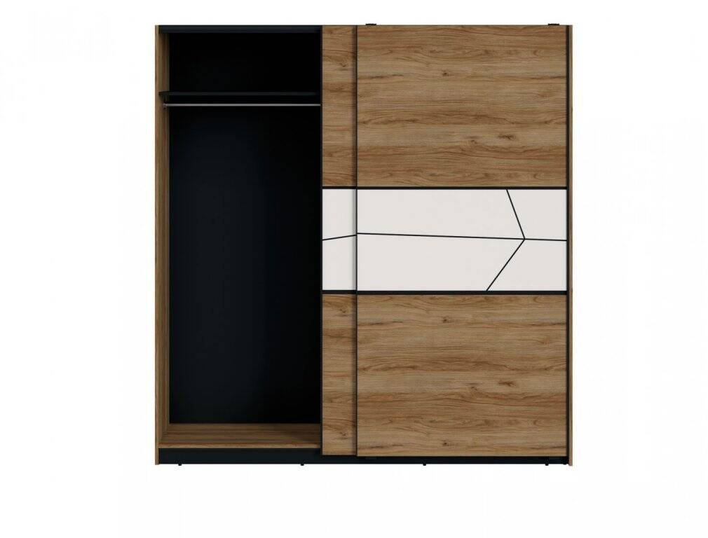 Looking for a functional and aesthetic solution to your bedroom’s lack of storage space? The Brolo BROS07 2-door wardrobe in Catania Oak, Black Pearl, and White is the quintessence of modern design combined with a practical solution for everyday needs. It offers a unique combination of the natural look of oak with the elegance of Black Pearl and the purity of Gloss White. The durability of this piece is guaranteed by the use of high-quality laminated board and MDF, which provide resistance to scratches and other damage while maintaining its excellent appearance for years. Measuring 197.2 cm wide, 208.5 cm high, and 60.9 cm deep, the Brolo BROS07 wardrobe will easily accommodate all your essential wardrobe items. Equipped with a sliding door system, it allows easy access to the interior, even in confined spaces, without having to leave additional space for opening doors.