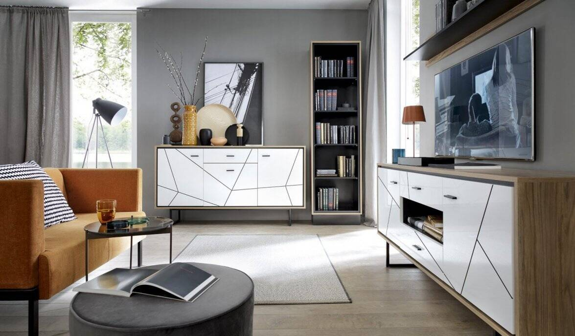 Allow me to introduce you to a stunning piece of furniture that will add splendor to any interior – the Brolo BROV02 display cabinet. This unique piece is not only practical storage space but also a unique decorative element that will make your space truly unique. The Brolo display cabinet features a contrasting color scheme – Catania Oak combined with elegant Pearl Black and white accents, making it exceptionally attractive and modern. Measuring 106.9 cm wide, 208.5 cm high, and 37 cm deep, it offers the perfect display for your most treasured ornaments and collectibles. Made of laminated board and with black-stained MDF fronts, the Brolo display cabinet is not only durable but also easy to clean. The natural oak finish and elegant black combined with white guarantee a unique style that complements a variety of interior designs, from classic to modern.