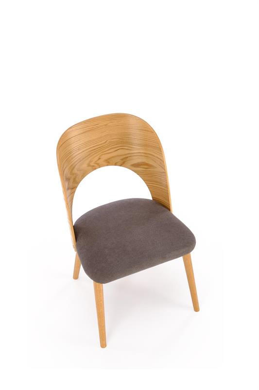 dimensions: 52/58/83/45 cm, material: solid oak wood / oak bent plywood / cloth, color: grey – natural