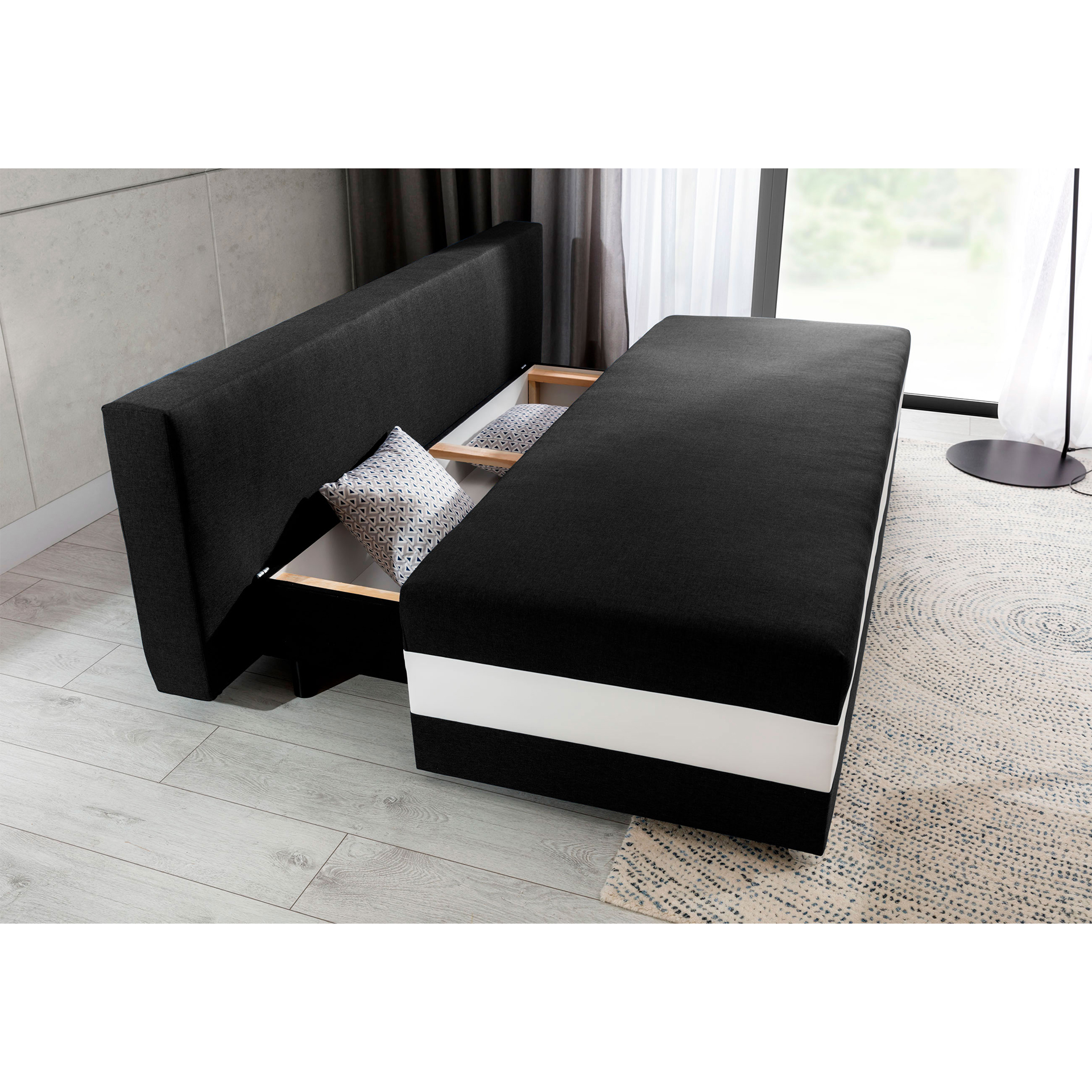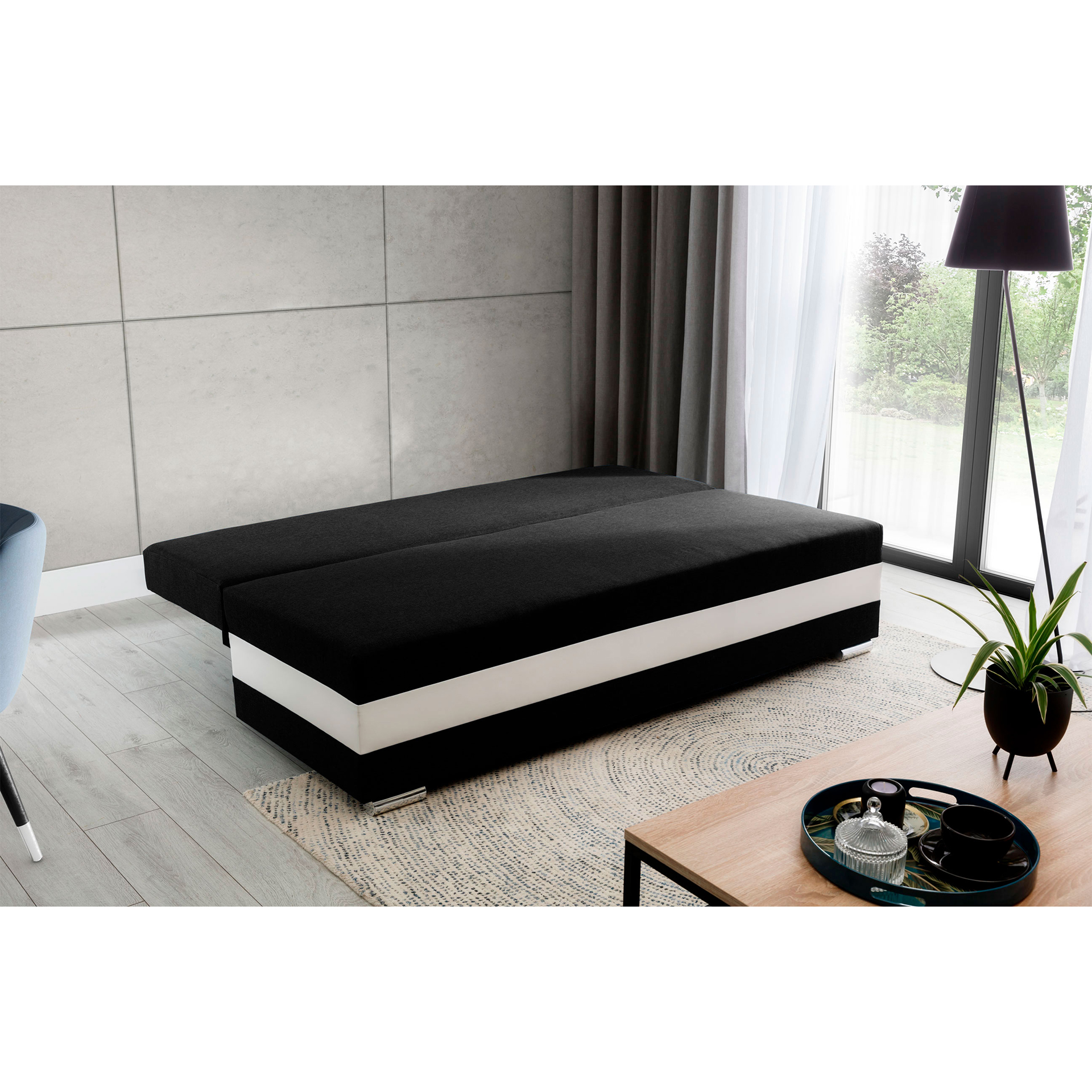 Calia is a simple and elegant sofa measuring 195 x 91 x 83 cm, designed for fans of minimalist finishes. It’s perfect for relaxing both day and night, as it can be converted into a 195 x 140 cm bed. It also features a spacious storage compartment for bedding and additional decorative pillows. Our piece is finished in a solid shade, which is broken up by a wide stripe running across the bottom of the seat. Besides its designer finish, it’s worth noting the sofa’s filling, which is equipped with a sinuous spring and T25 foam. Calia impresses with its simplicity and minimalism, yet with character. It combines maximum comfort with cozy elements that will be the perfect complement to any home.