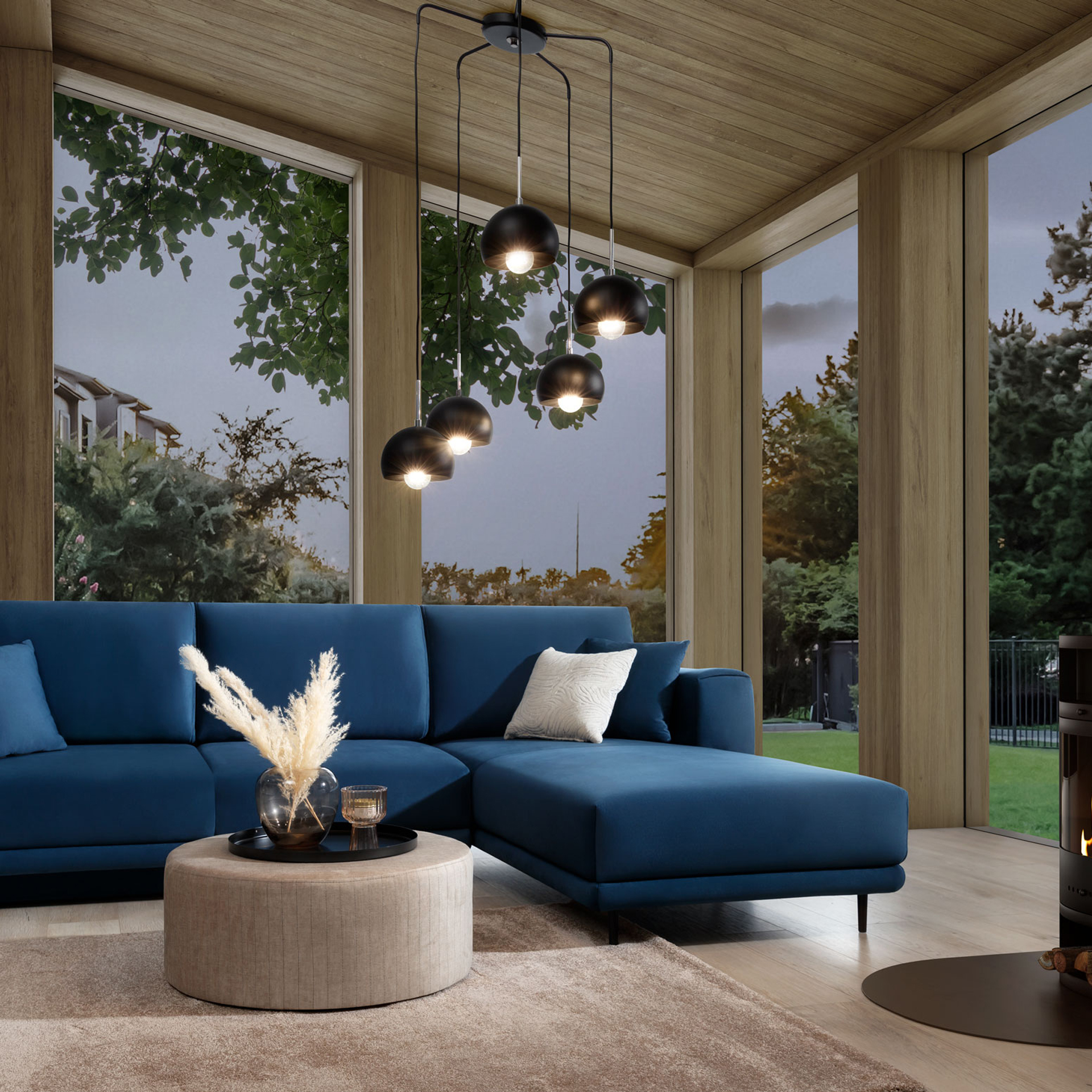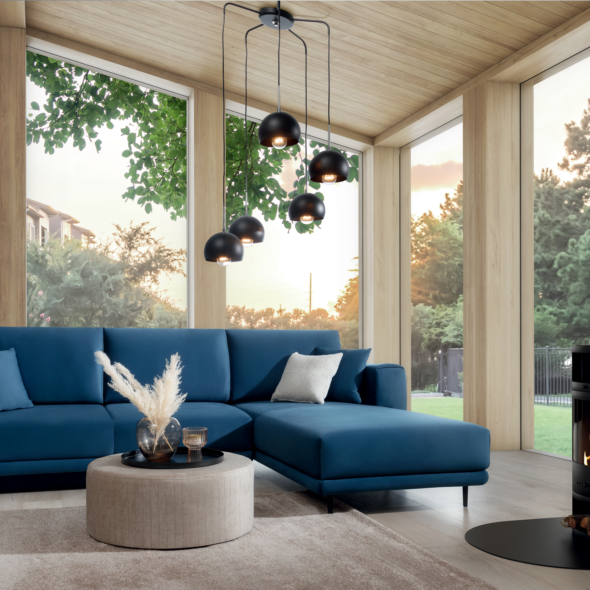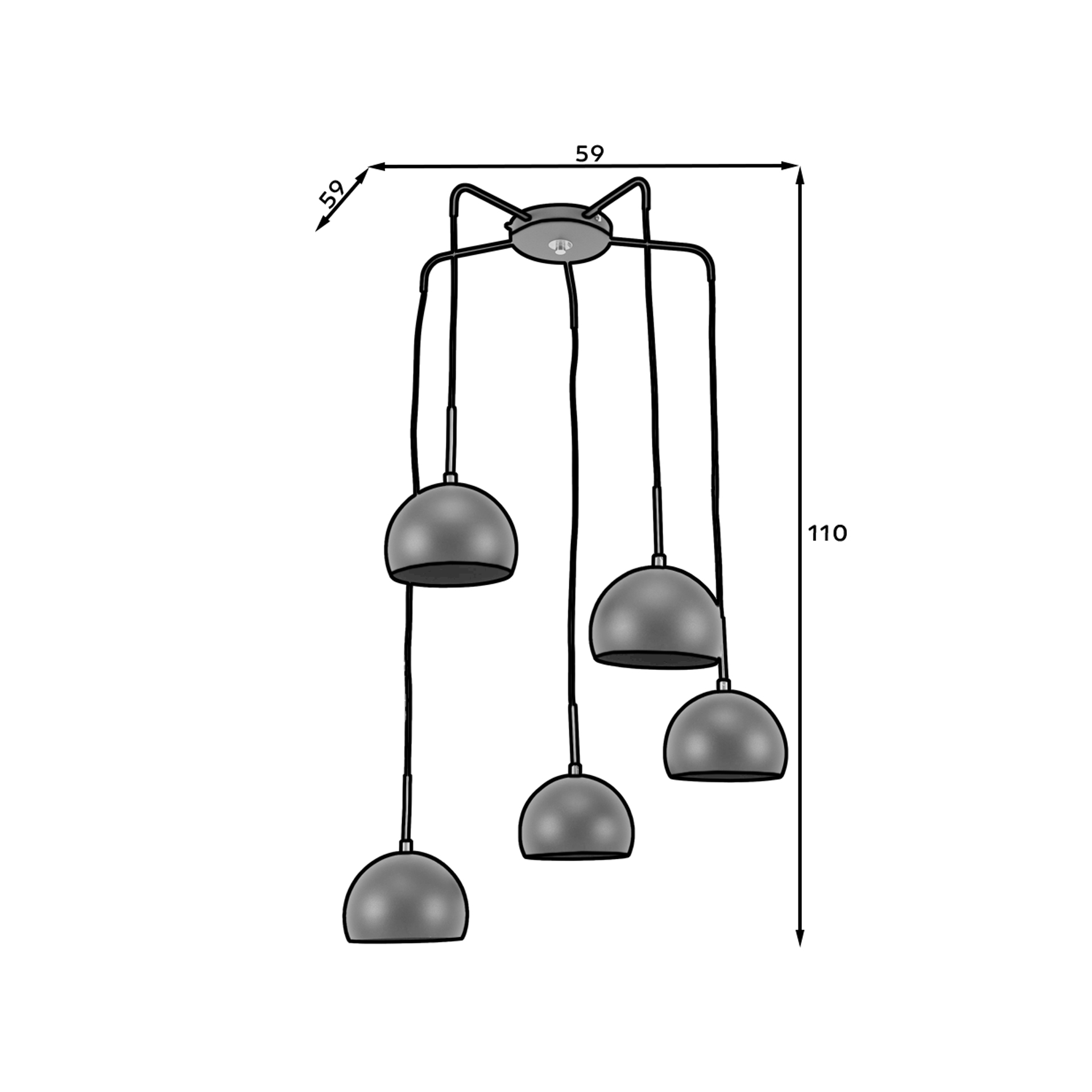 Canonus is a designer pendant lamp with impressive dimensions (59 cm x 59 cm x 110 cm) and an elegant black finish. Made of steel, it features an adjustable height mechanism. The lamp has 5 light points and accepts E27 bulbs with a maximum power of 15W (not included). It has an IP20 rating and is packaged in a cardboard box with foil. It adds style and elegance to any interior.