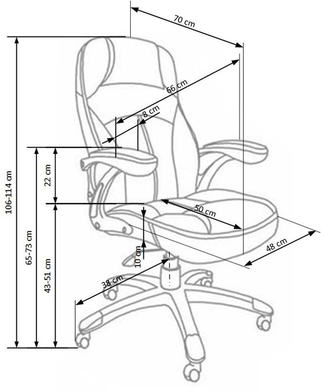 multiblock mechanism, rubber coated wheels, dimensions: 66/70/106÷114 cm, material: perforated eco leather, color: black