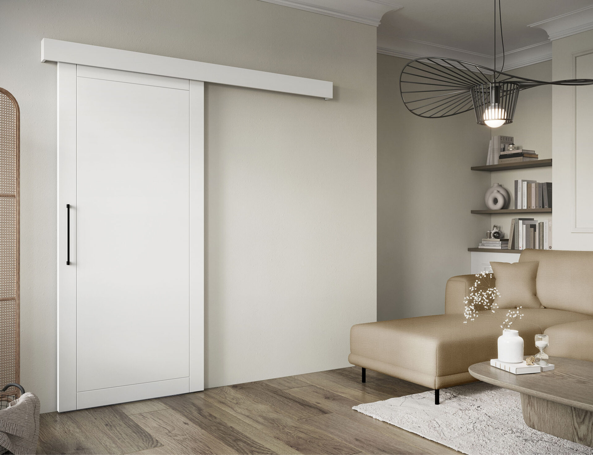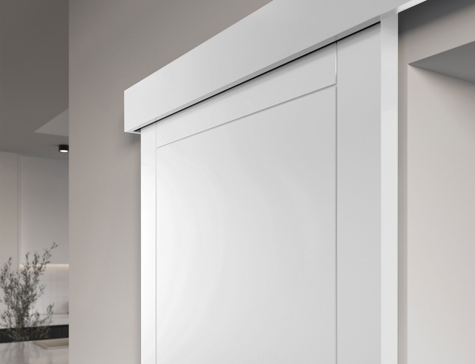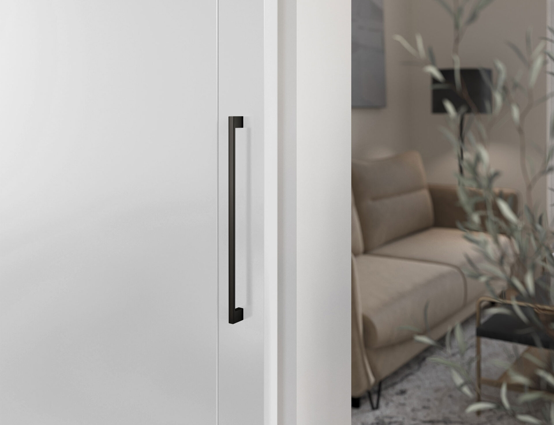 Minimalist design and high-quality materials make Charlise doors ideal for living rooms, kitchens, and bedrooms. Measuring 90 cm wide and 204 cm high, they fit standard door openings. Made of laminated furniture board, they are available in a semi-matte white finish (White U8681). Equipped with the Laguna STANDARD 1990 mechanism with a 195 cm guide, Charlise doors slide smoothly and quietly. A laminated furniture board cover and a black plastic handle are included. The doors feature a door stopper, a roller, and a bottom guide for safety and ease of use. Installation is simple, simply mounting them to the wall. Charlise sliding doors are the perfect solution for those who value functionality, aesthetics, and modern design.
