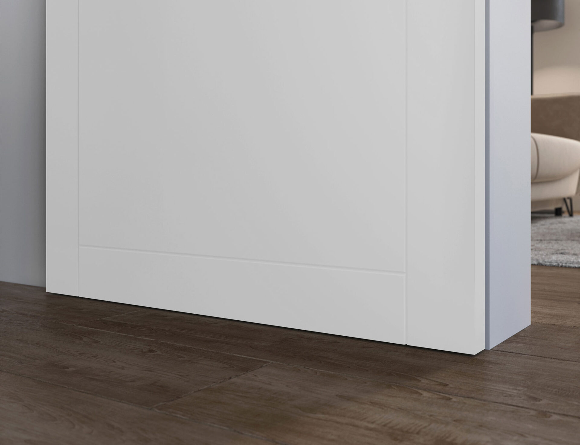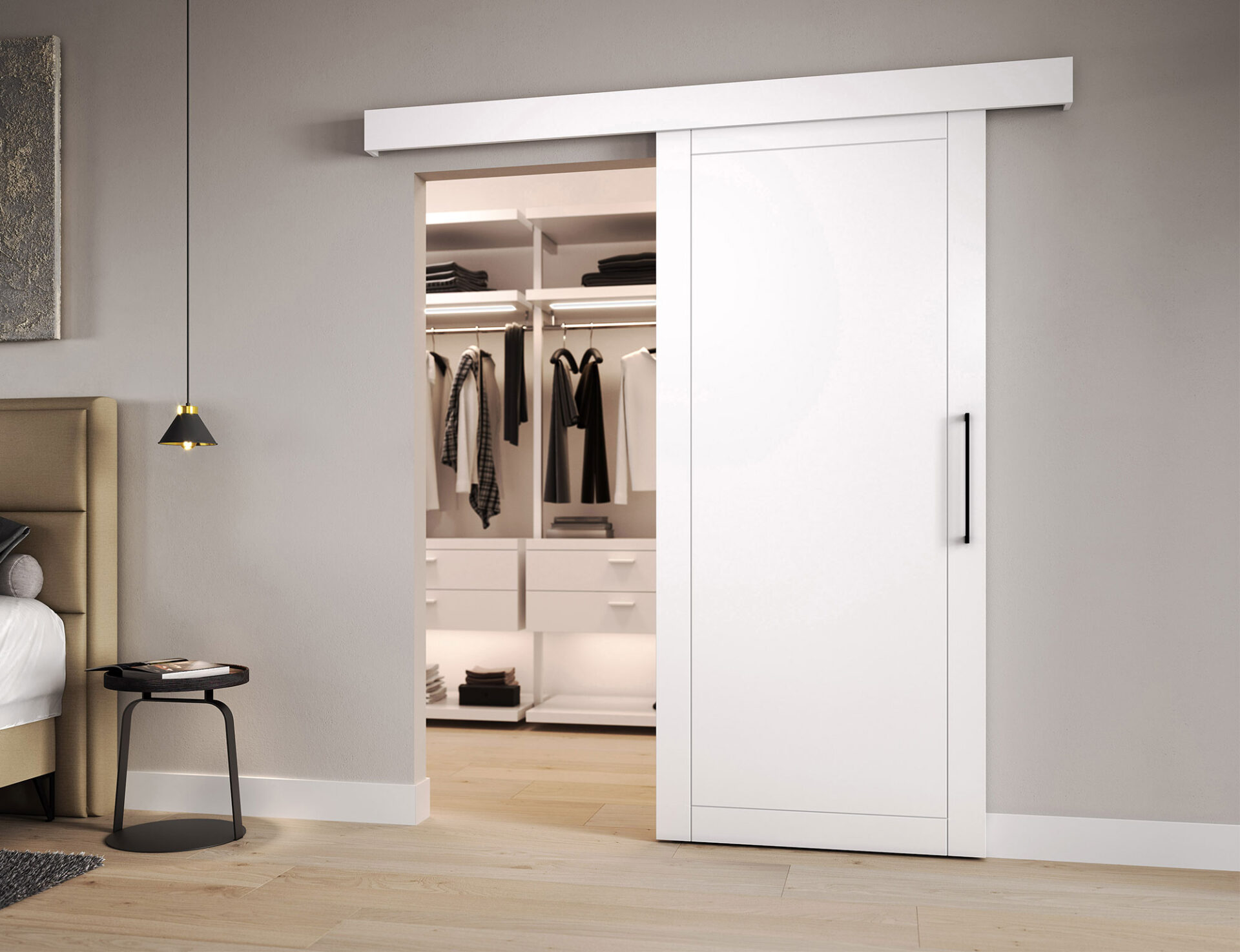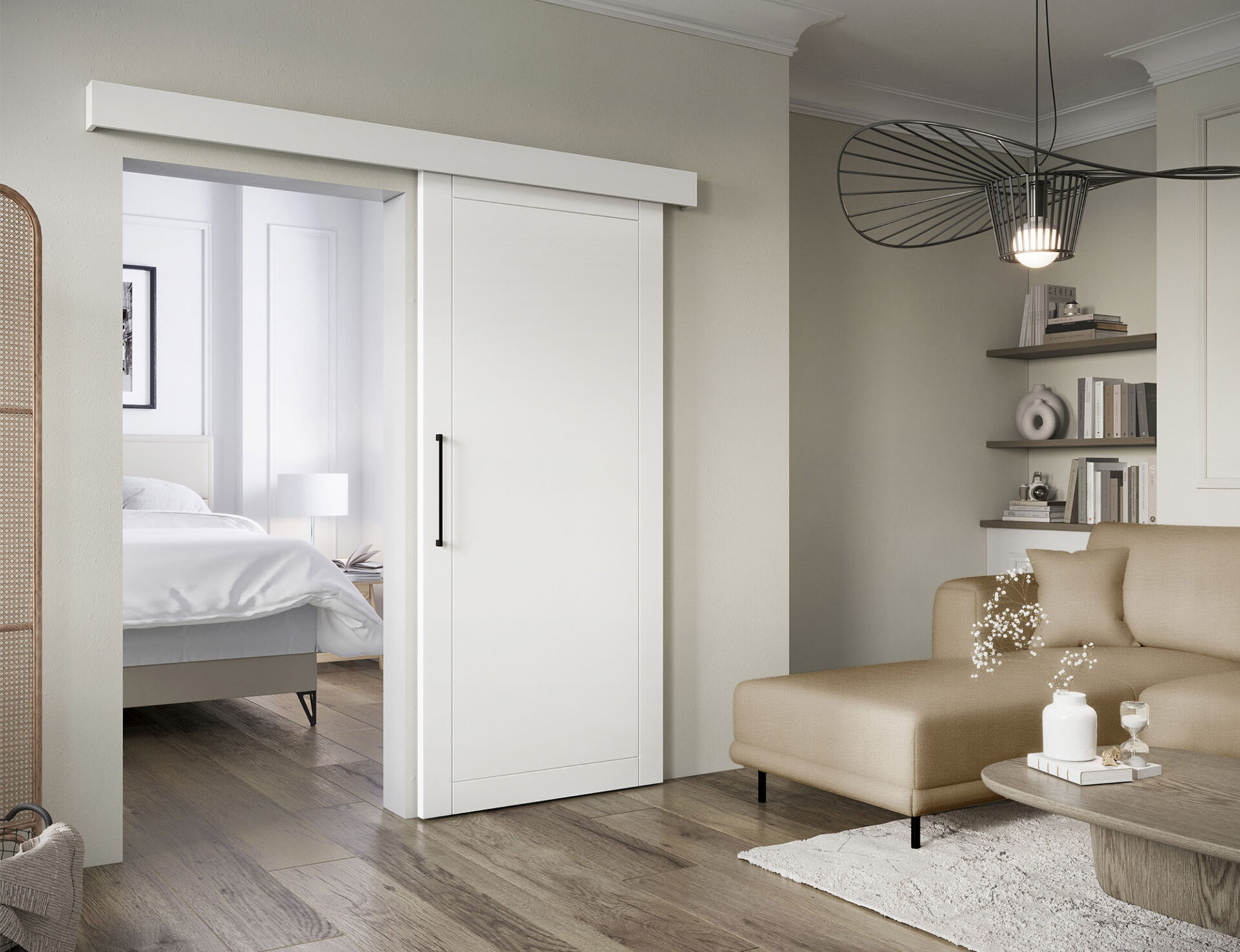 Minimalist design and high-quality materials make Charlise doors ideal for living rooms, kitchens, and bedrooms. Measuring 90 cm wide and 204 cm high, they fit standard door openings. Made of laminated furniture board, they are available in a semi-matte white finish (White U8681). Equipped with the Laguna STANDARD 1990 mechanism with a 195 cm guide, Charlise doors slide smoothly and quietly. A laminated furniture board cover and a black plastic handle are included. The doors feature a door stopper, a roller, and a bottom guide for safety and ease of use. Installation is simple, simply mounting them to the wall. Charlise sliding doors are the perfect solution for those who value functionality, aesthetics, and modern design.