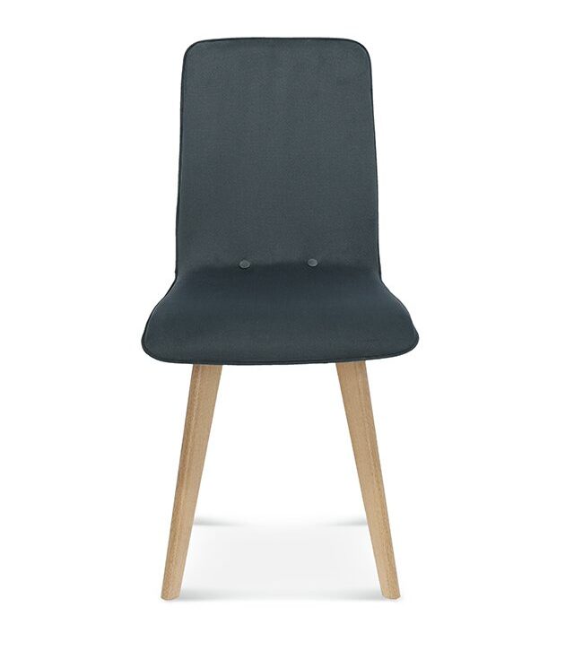 Modern chair Cleo A-1603, Beech, created by the outstanding Polish designer Andrzej Lęckos, is made of high quality manufacturing materials, which guarantees its long-term and constant use. Furniture is dedicated to both home kitchens and dining rooms as well as restaurants or guesthouses. The upholstered seat and back of the chair is made of a single sheet of profiled plywood, which is a guarantee of its reliability and comfort of use. The whole rests on wooden, elegant legs made of beech lumber. The furniture has a upholstered seat and backrest, the upholstery of which can be chosen from fabrics and natural leathers included in the product Wizard. The distinctive feature is the two upholstery buttons visible just above the seat line.