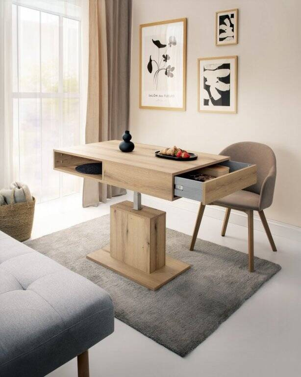 This coffee table is more than just a decorative element. Thanks to its lift-up top, you can easily transform it into a full-size table, perfect for comfortable dining. It’s the perfect solution for small spaces where every centimeter counts. Its ergonomic dimensions and timeless style make the Cortado CRTT04 a must-have in any modern interior.