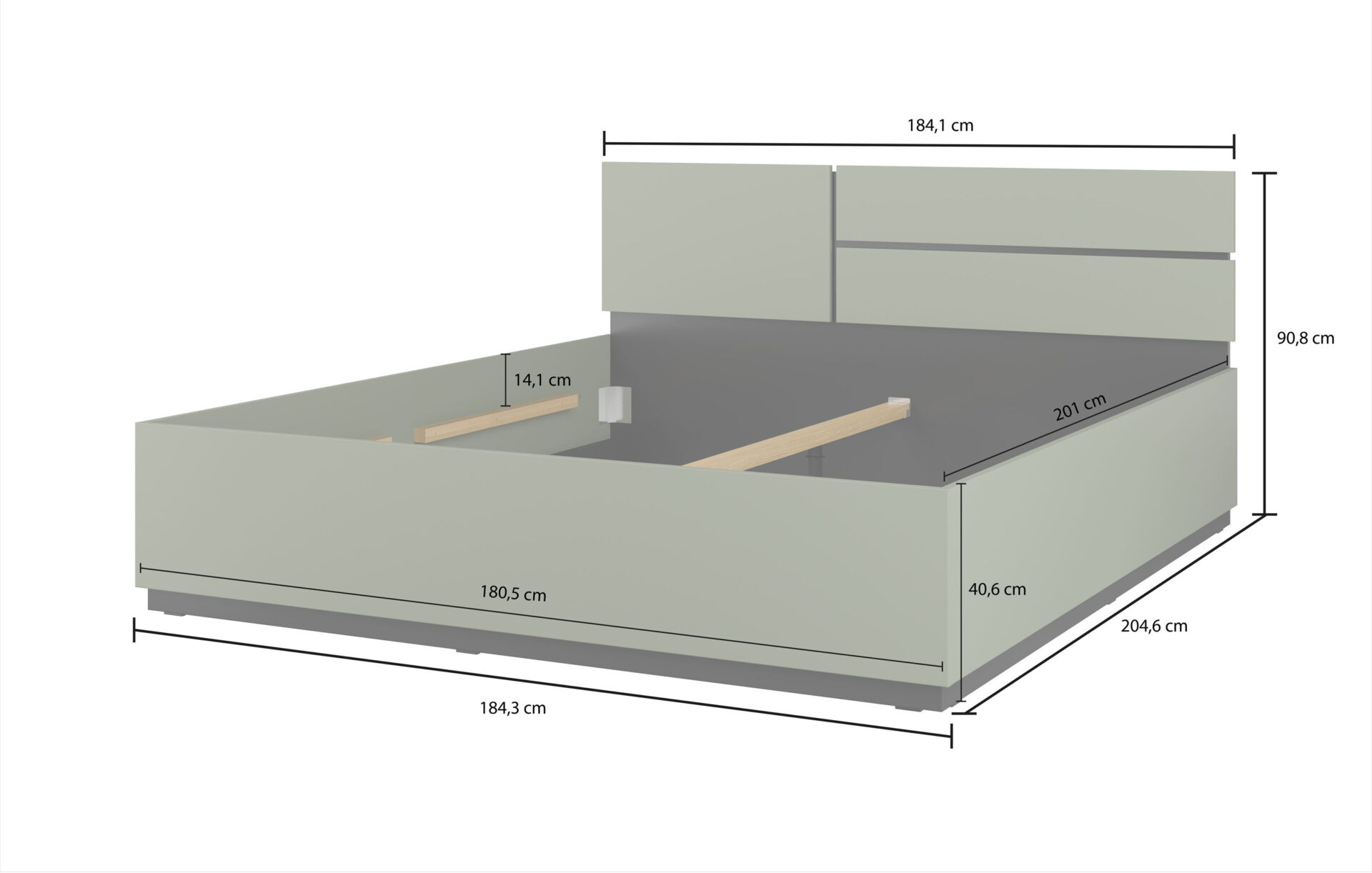 Discover the unique Cross S bed, which will bring a touch of elegance and comfort to your bedroom. Crafted in a stunning muted green, this bed is the perfect blend of modern design and functionality, blending seamlessly into a variety of interior designs. Its subtle color gives the space a unique character while creating a soothing atmosphere conducive to relaxation. Durability and aesthetics go hand in hand thanks to carefully selected materials. The laminated board used for both the frame and fronts ensures the furniture’s longevity. Black leg accents add a stylish finish, while delicate details ensure every element is meticulously thought out. The Cross S bed not only impresses with its appearance but also becomes a focal point in your bedroom, around which you can build a unique blend of styles. Ergonomics is another advantage of the Cross S bed. Offering a spacious surface of 180 cm, it provides you with comfort during sleep and rest, which is crucial after a long day. Although the frame and mattress are not included, you can easily customize them to your individual preferences, allowing you to achieve ideal sleep comfort. The bed’s thoughtful design makes it easy to fit into any style—from minimalist to more traditional.