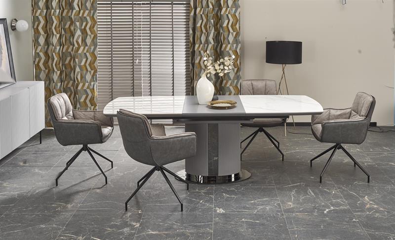DANCAN prailginamasis stalas, baltas marmuras / pilka / kairė pilka / juoda