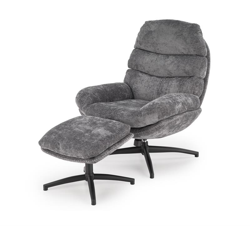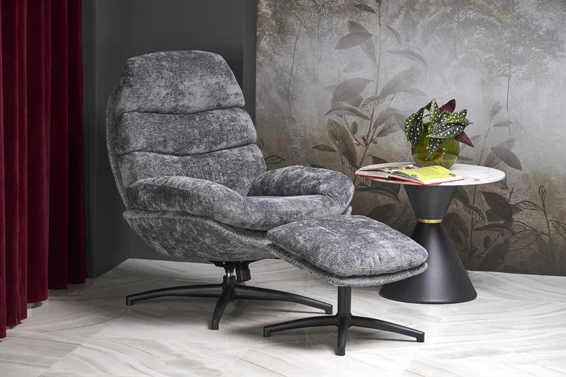 dimensions: 80/90/100/45 cm and 50/45/42 cm; armchair with ottoman and with rocking function, material: cloth / powder coated steel, color grey