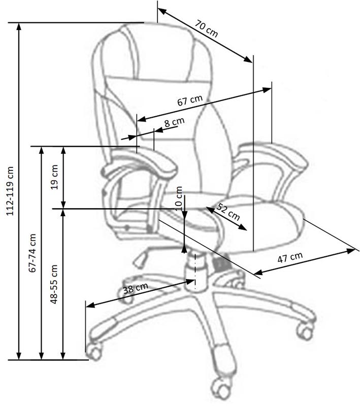 multiblock mechanism, rubber coated wheels, dimensions: 67/70/112÷119 cm, material: eco leather, color: grey
