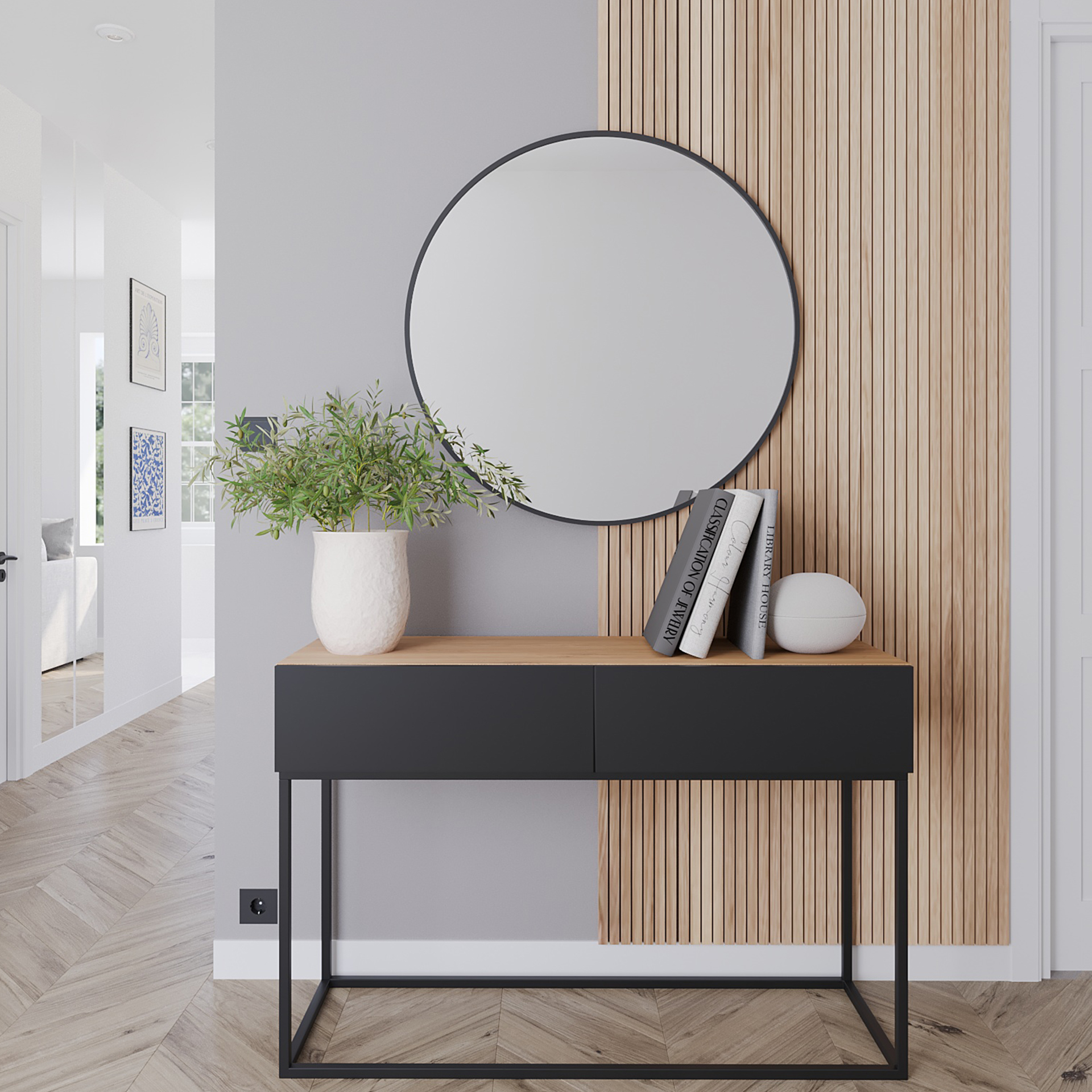 The Divissi is a unique mirror with an attractive round shape and a stylish black frame. Its diameter is 80 cm, providing a clear and full reflection, adding an elegant touch to the interior. The mirror’s surface is 3 cm deep, adding strength and durability. The Divissi mirror comes with everything you need for installation. Suspension plugs, screws, and hooks are included to simplify installation and allow for easy wall mounting. This ensures the mirror is securely mounted and safe to use. The Divissi mirror has an IP21 rating, meaning it is protected against water droplets. This is ideal, especially in rooms with high humidity, such as bathrooms or kitchens. During transport, the Divissi mirror is carefully packaged in a cardboard box measuring 86x86x7 cm and weighing 7 kg. This sturdy packaging protects the mirror from damage and ensures it arrives intact. Thanks to its modern design and high-quality workmanship, the Divissi mirror will become a unique decorative element that will add style and sophistication to your home, office or other room.