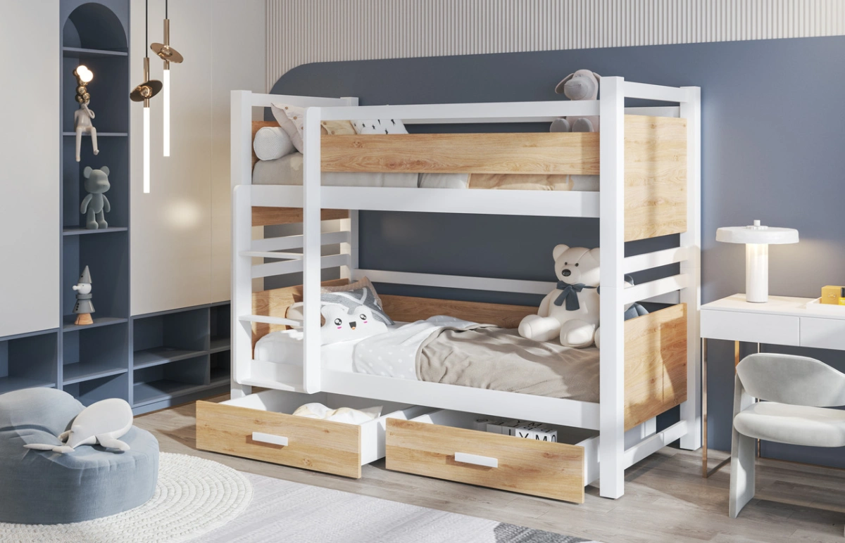Dviaukštė lova su stalčiais ir JANIS 2 asmenims 90×200 cm