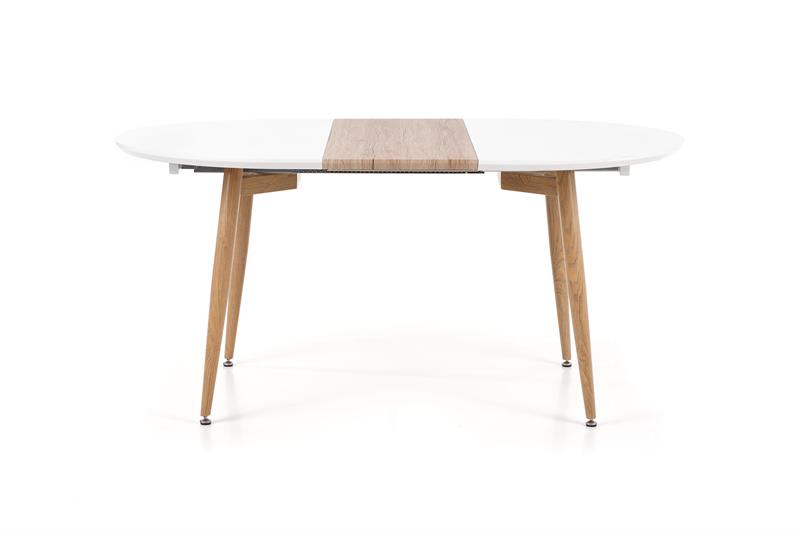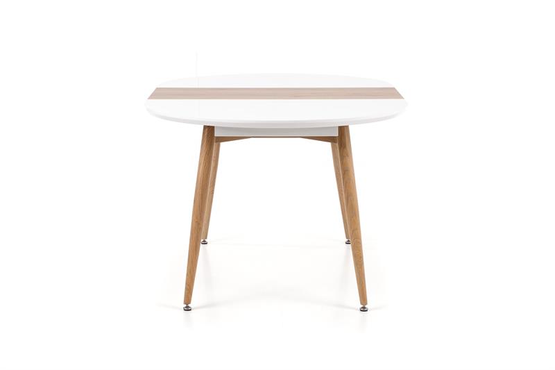 extension table, dimensions: 120-200/100/75 cm, material: lacquered MDF / laminated MDF / painted steel, color: white / san remo oak, legs – san remo oak