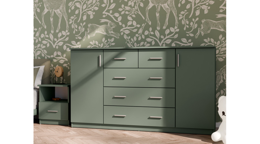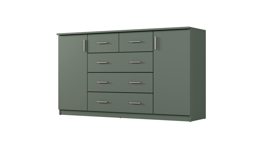 Erdvi komoda su spintelėmis ir mažais bei dideliais stalčiais, 160 cm,Zieleń Butelkowa – LINEA