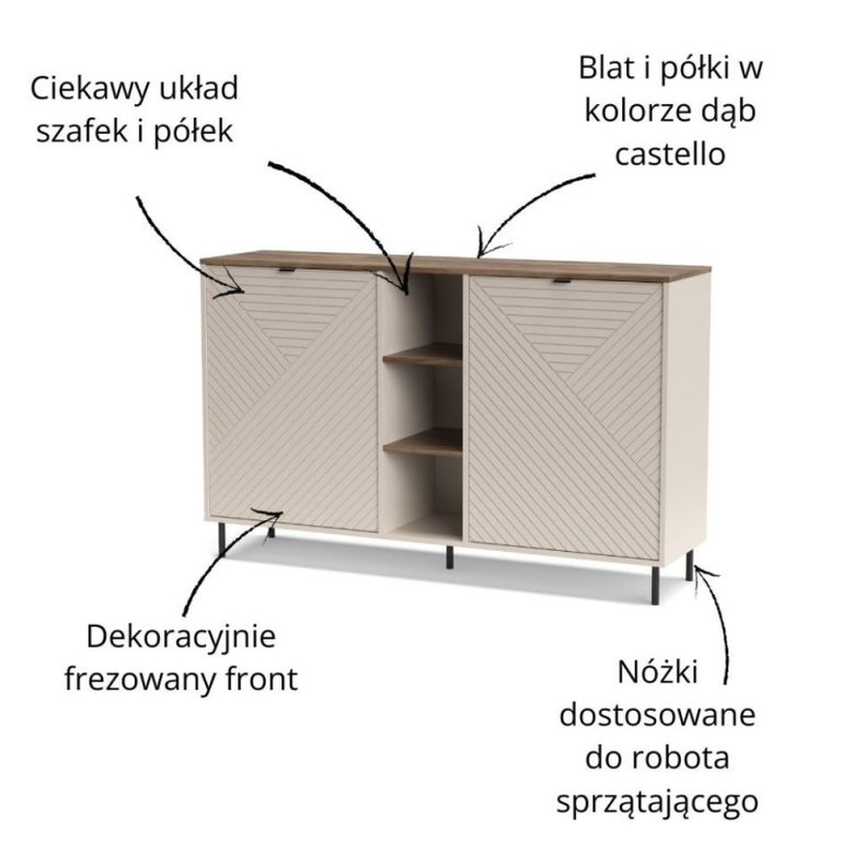 The EVO chest of drawers is the quintessence of contemporary design, bringing both elegance and exceptional functionality to your interior. Its subtly milled fronts in a delicate cashmere shade give the piece a unique character that perfectly aligns with the latest design trends. The combination of minimalist form with warm, natural Castello Oak wood creates a harmonious composition that attracts the eye and creates a cozy atmosphere.