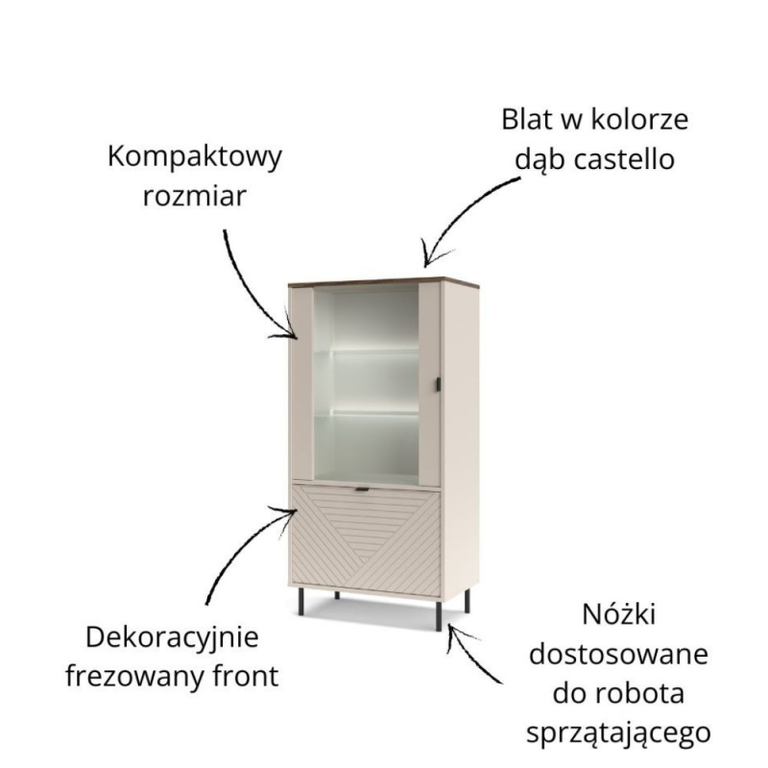 EVO Low Display Cabinet 1d1w Cashmere / Castello Oak