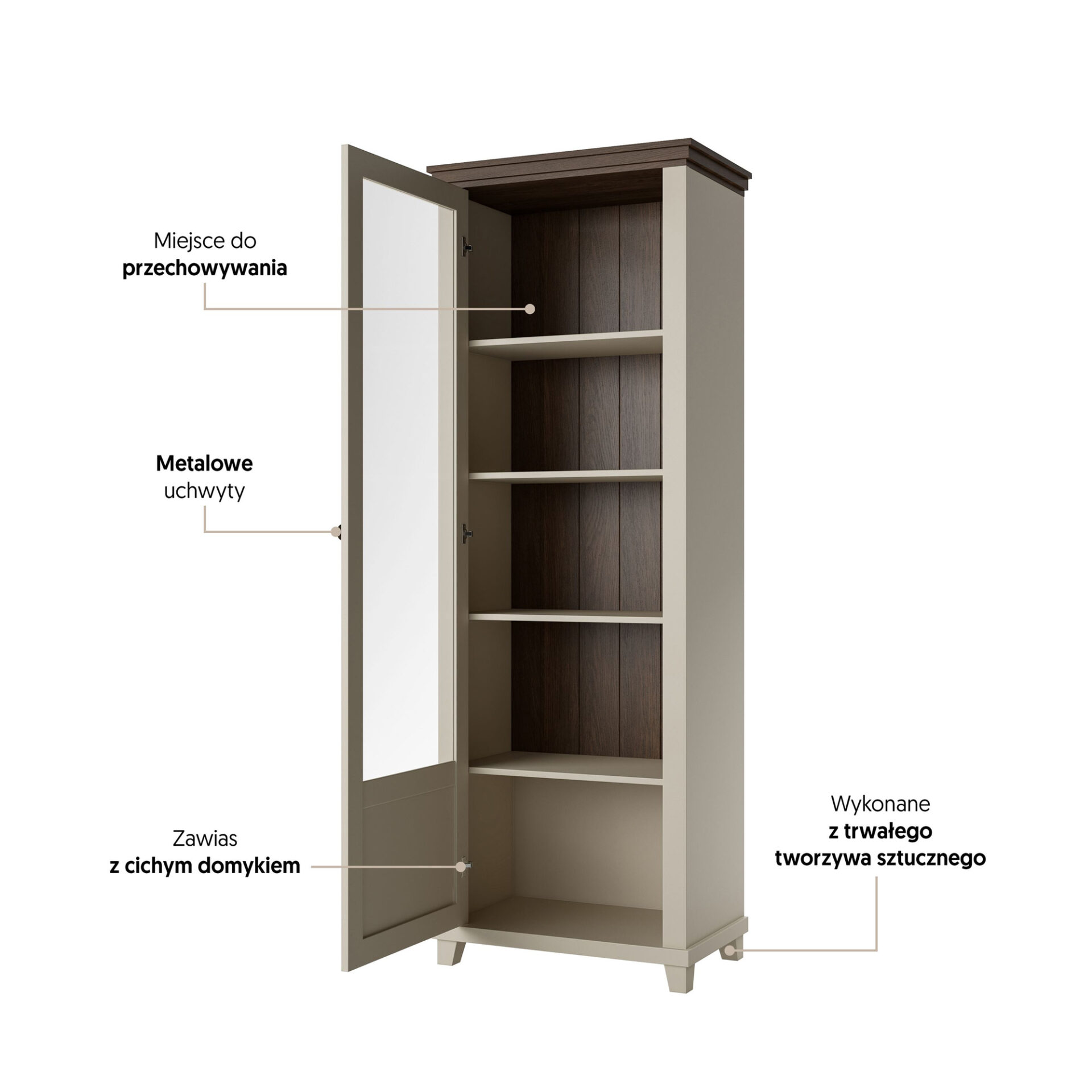 Introduce elegance and style to your interior with the Evora WM display cabinet from the renowned Helvetia brand. Designed for those who desire to combine modern design with functionality, this left-hand display cabinet in a light beige oak shade blends seamlessly into any décor. Its minimalist look and subtle details will make it a unique accent in your living room or dining room. Evora WM isn’t just a piece of furniture—it’s an expression of your lifestyle. It impresses with its perfectly balanced proportions and meticulous craftsmanship, guaranteeing years of durability. Its 200 cm height allows you to easily accommodate your favorite books, decorations, and world-class porcelain. Silent hinges make using the display cabinet even more comfortable and enjoyable. The light beige color of the body and front makes the Evora WM display cabinet fit into a variety of color palettes, adding lightness and freshness to your interior. The 42 cm depth makes the piece practical while taking up minimal space, which is especially important in smaller spaces. The matte black metal handles are an interesting accent that emphasizes the modern character of the piece.