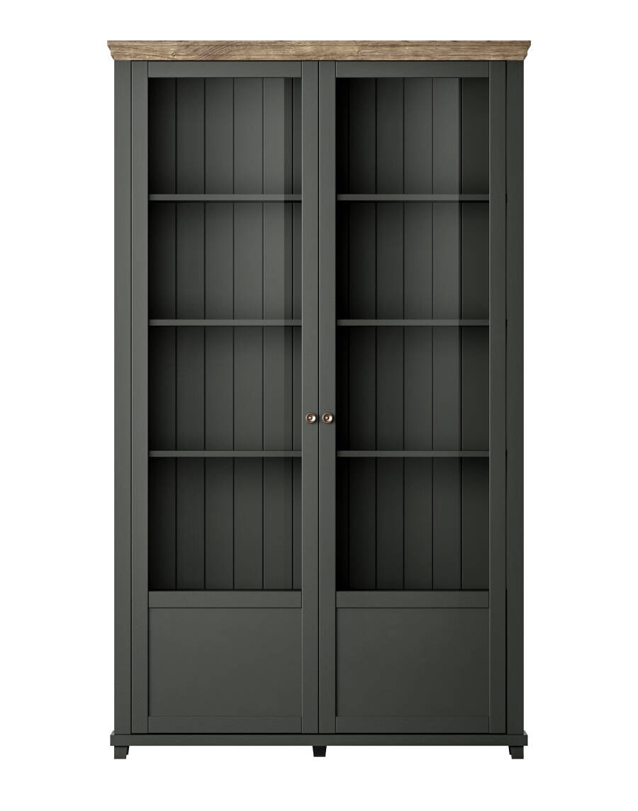 Looking to add a touch of originality and functionality to your interior? The Evora WM 2-Door Display Cabinet from Helvetia, available in Green and Lefkas Oak, will meet these requirements. This stylish and modern piece adds a unique character to your interior, blending seamlessly with both traditional and more contemporary interiors. Measuring 126 cm wide, 200 cm high, and 42 cm deep, the cabinet offers not only aesthetic appeal but also functionality. Crafted from high-quality materials, such as MDF board with a foil finish on the fronts and laminated furniture board on the body, it ensures durability and resistance to damage. The cabinet offers ample space thanks to two large doors and six shelves, allowing for elegant display of decorations, book collections, or tableware. You can customize the shelf layout to create the perfect space for your items. Additionally, the display case offers the option of installing LED lighting, which will not only highlight the appearance of the items on display, but also add coziness to the room.