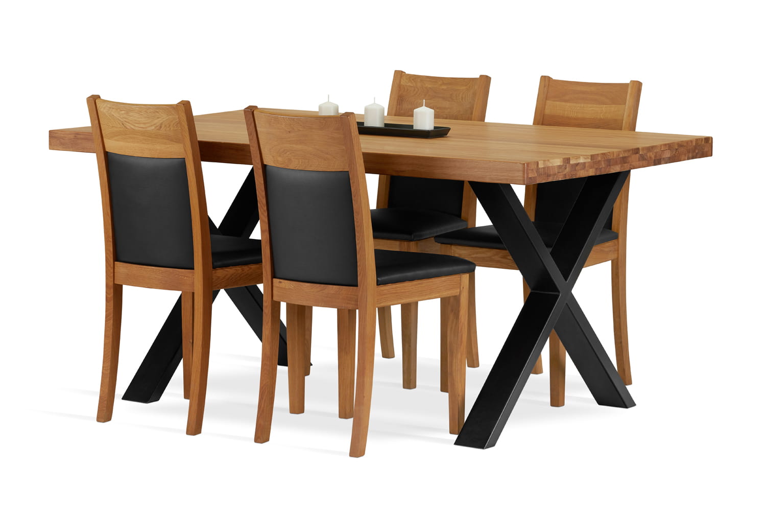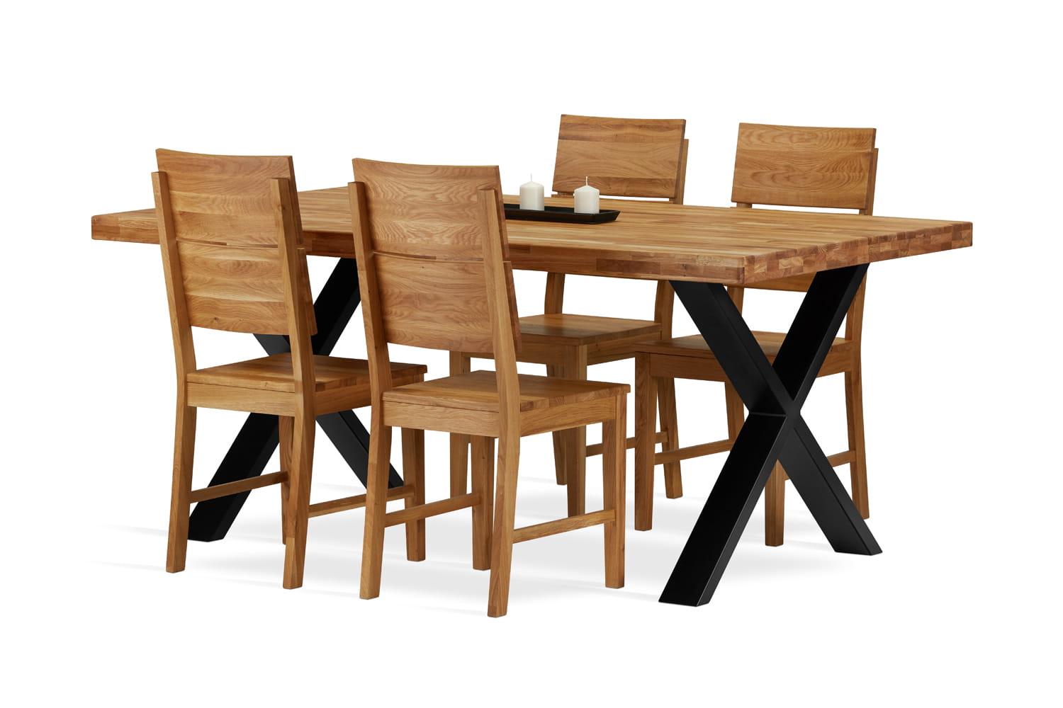 The table is made of solid oak wood. An oil finish gives it a natural wood look. Black powder-coated metal legs.