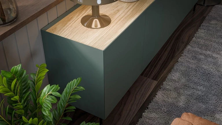 Fronts: Olive lacquered, matte finished for a luxurious effect.
