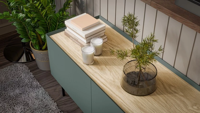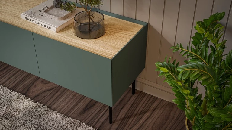 Fellini 150 cm Olive TV Stand with Oiled Oak Top