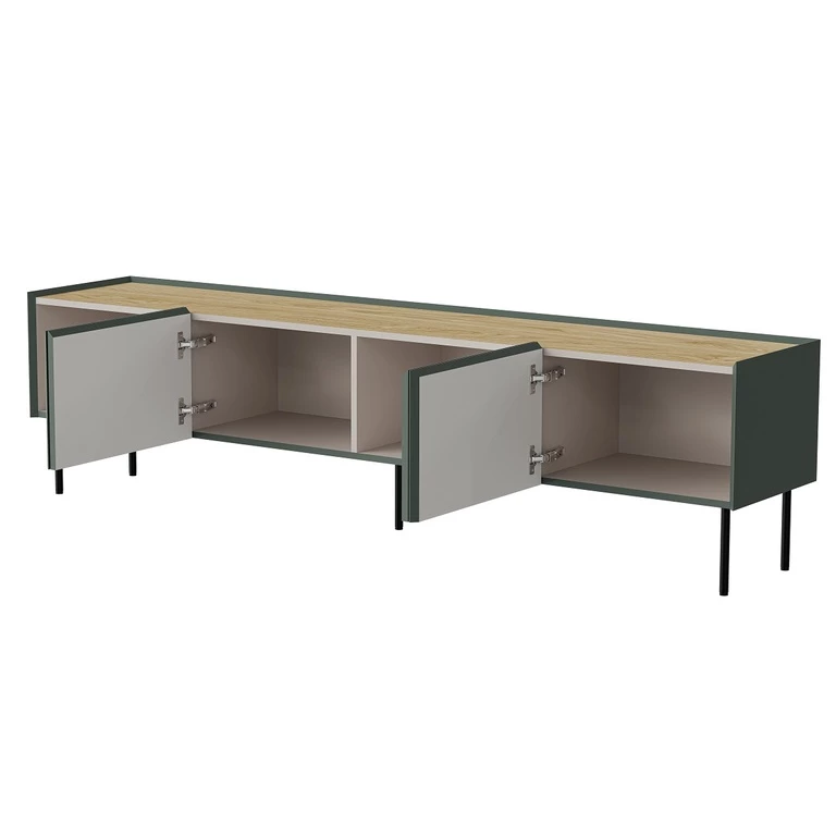 Fellini 200 cm Olive TV Stand with Oiled Oak Top