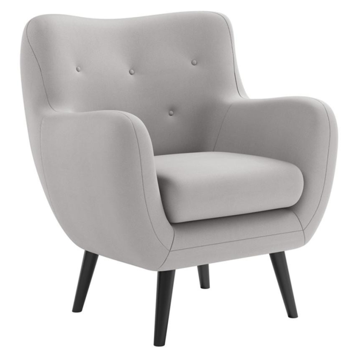 The armchair measures 91 cm wide, 102 cm high, 83 cm deep, and has a seat height of 48 cm, providing comfortable support for both your back and arms. The structure, supported by wooden legs in the following colors: wenge, antique cherry, natural beech, natural oak, walnut, silver, and black, adds a visual lightness and makes cleaning underneath the piece easier. The high backrest provides excellent support for the entire back, resulting in noticeable comfort during long sitting periods. Decorative quilting gives the armchair a distinctive character, emphasizing the meticulous craftsmanship. The polyurethane foam backrest, combined with elastic straps, provides softness yet the right amount of resilience, ensuring the structure retains its shape for a long time. The seat, constructed from a sinuous spring and polyurethane foam, complements the design, ensuring even weight distribution and long-lasting comfort.