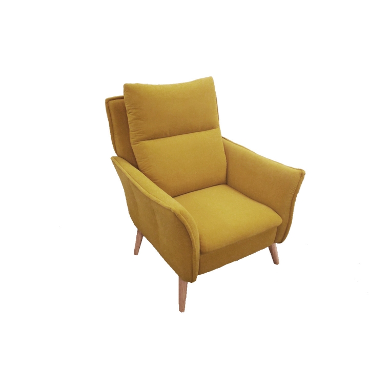 The entire piece is supported by high, wooden legs, which lend the structure a light feel and make it easier to keep the area under the seat tidy. This design also promotes free air circulation, which is particularly important in rooms used daily. This makes the armchair aesthetically pleasing in both a spacious living room and a cozy office.