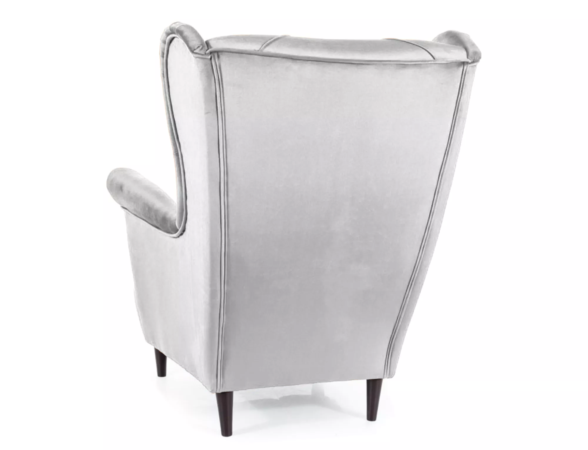Armchair, velvet fabric, color: light gray Bluvel 03, wood, color: wenge. Armchair dimensions: A – 101, B – 82, C – 39, D – 57, E – 92, F – 12 cm