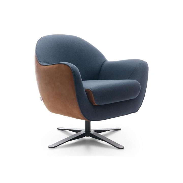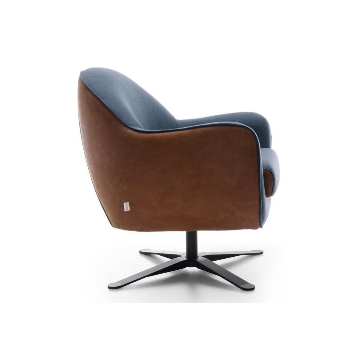 The armchair’s base is a black metal swivel structure, ensuring stability and smooth 360-degree rotation. This allows you to freely change the seating direction without having to move the chair. The high legs add a touch of lightness to the overall design and make it easier to keep order under the armchair. The manufacturer offers a wide selection of upholstery fabrics, allowing for individual color matching to the interior. If you choose to combine two types of fabric, the armchair’s exterior and back are always made of Elefant or Stratos fabric, and you can choose an additional fabric from our full range. This solution allows you to create a piece of furniture with a unique character.