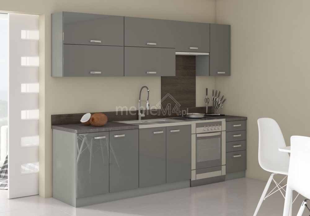 high-quality upper fronts made of grey gloss PVC technology, resistant to unfavorable kitchen conditions
