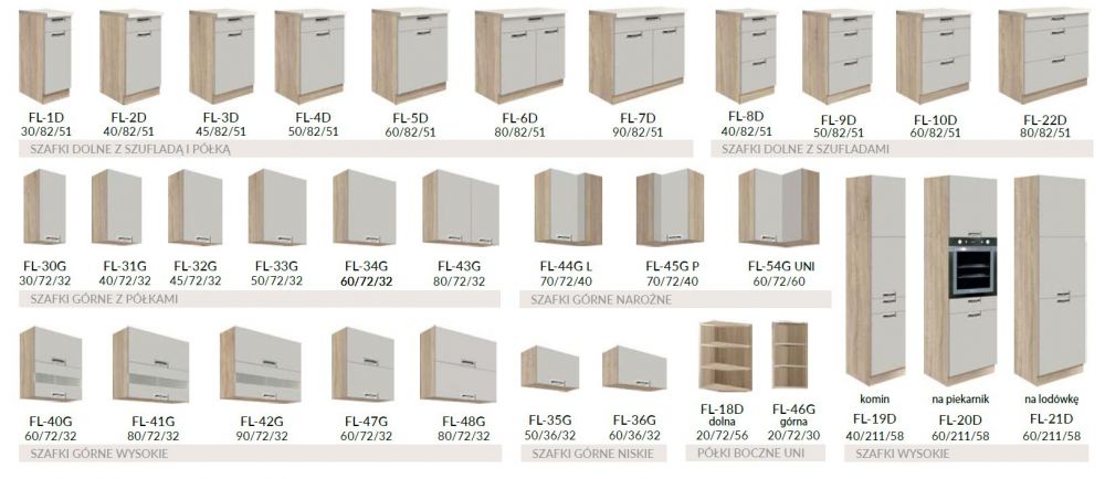 The Favorit kitchen is a modern and ergonomic kitchen furniture set featuring: