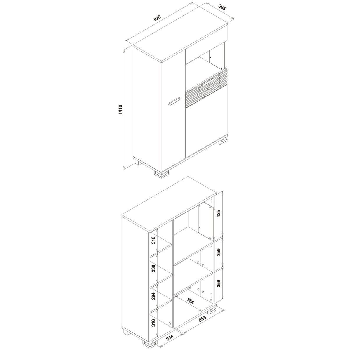 Width 92 cm Depth 39.5 cm Height 141 cm Product weight with packaging 54.10 kg Manufacturer’s code / symbol GT04 Collection name G-TE Name in the b2b system G-TE GT04 WHITE OAK P/OAK DISPLAY CABINET L/P SET Number of product packages 3 Style Modern Equipment Assembly instructions / assembly accessories Assembly For self-assembly Body color Oak Body finish material / type / thickness 16 mm furniture board Top body top finish / material / type / thickness 22 mm furniture board Bottom body top finish / material / type / thickness 22 mm furniture board Shelf color Oak Shelf finish material / type / thickness 16 mm furniture board Shelf quantity 2 Crown shelf quantity 2 Back wall finish material / type / thickness 2.5 mm HDF furniture board Back wall visible part color Black Front color Gloss White / Oak Front finish material / type / thickness 16 mm furniture board / 18 mm MDF furniture board Front hinge ⌀ 35 mm adjustable in three planes Front handle / finish / color Plastic / black Glazed front finish / glass color Tempered / Antisol brown Glazed front glass thickness 4 mm Soft-close door system Standard Leg / finish / color Non-adjustable / plastic / black Leg height 50 mm Number of doors 2 Number of recesses closed behind the front glass 1 Number of recesses closed 6