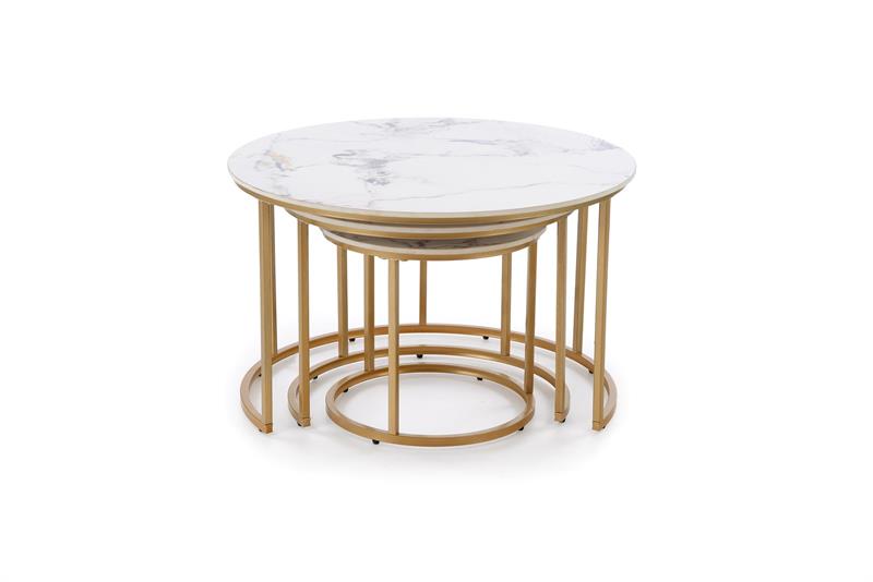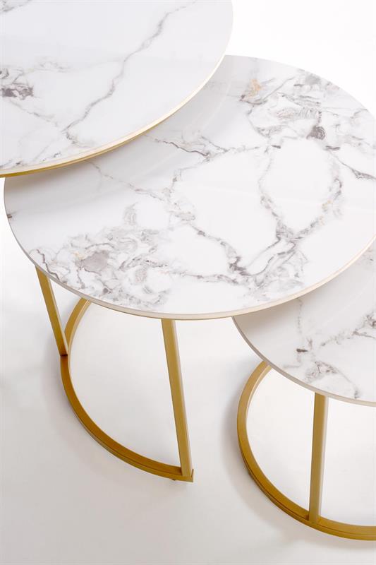 GILDA trijų kavos staliukų komplektas, baltas marmuras / auksas