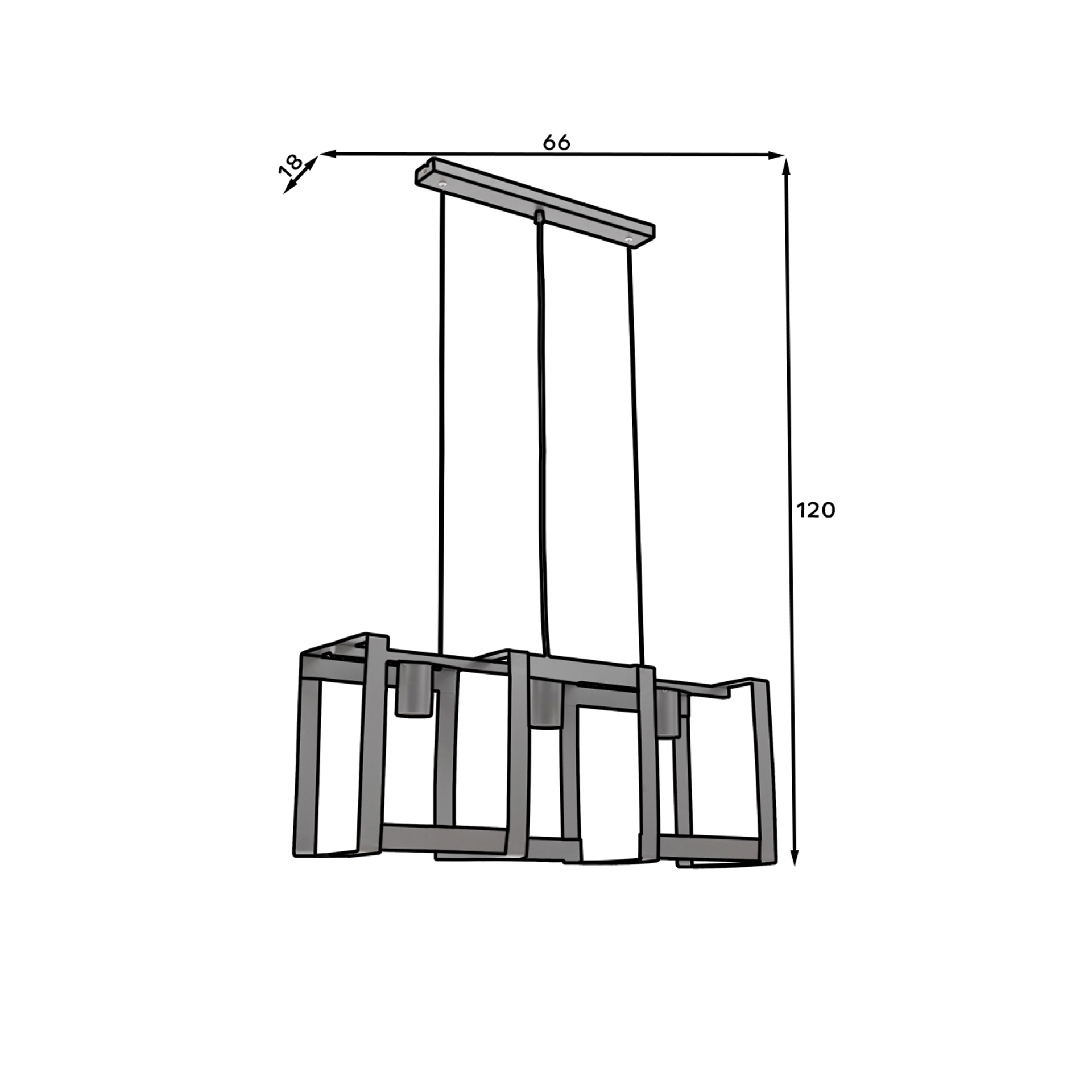 The Giorri pendant lamp is a designer light fixture with a unique look. It measures 66 cm wide, 18 cm long, and 120 cm high. The Giorri lampshade and base are made of durable steel, ensuring a solid construction. The lamp’s height is adjustable, allowing you to adjust its position to your individual preferences. The lamp has 3 light sources and supports an E27 socket (max. 15W). The IP rating is IP 20. Packaged in cardboard and foil, the package dimensions are 68x26x30 cm and it weighs 3.55 kg.