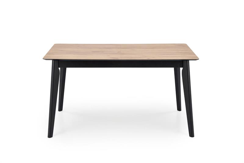 dimensions: wymiarry: 140-180/80/76/153 cm; extension table, material: laminated chipboard / solid wood, color: top – wotan oak, legs – black