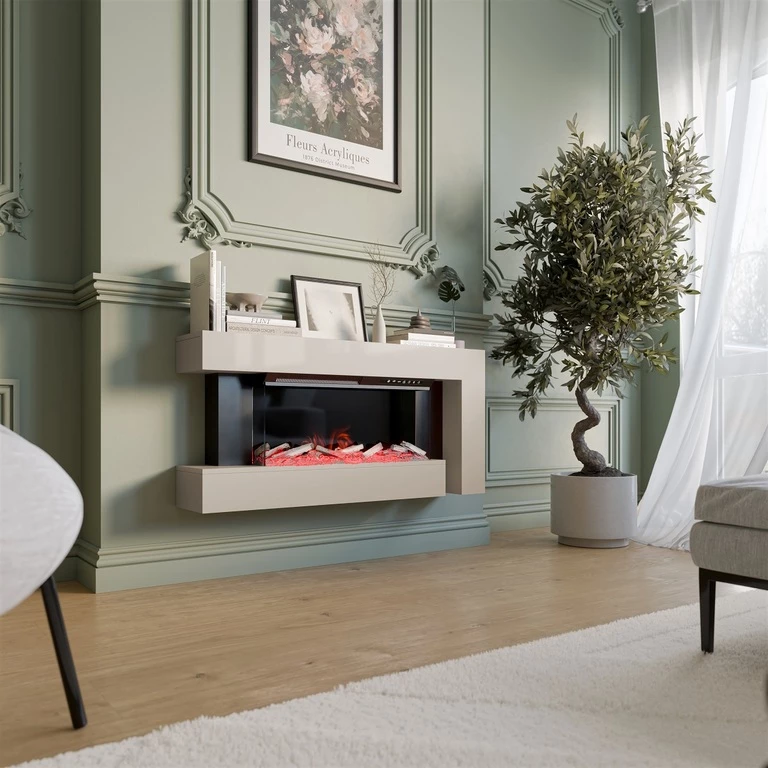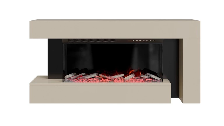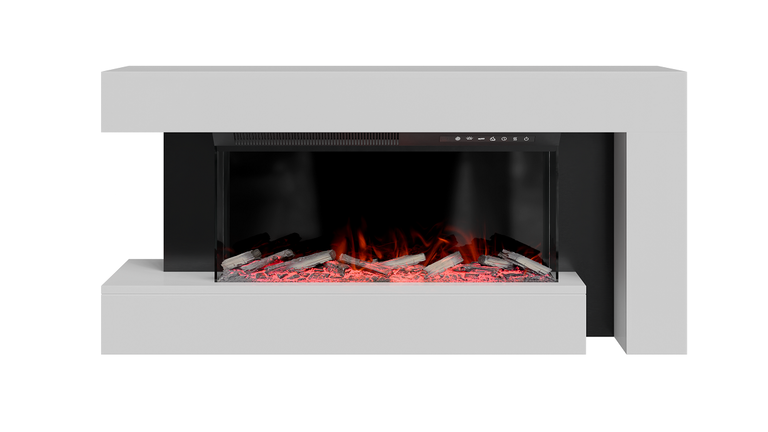 Electric fireplace for wall mounting and standing under the TV