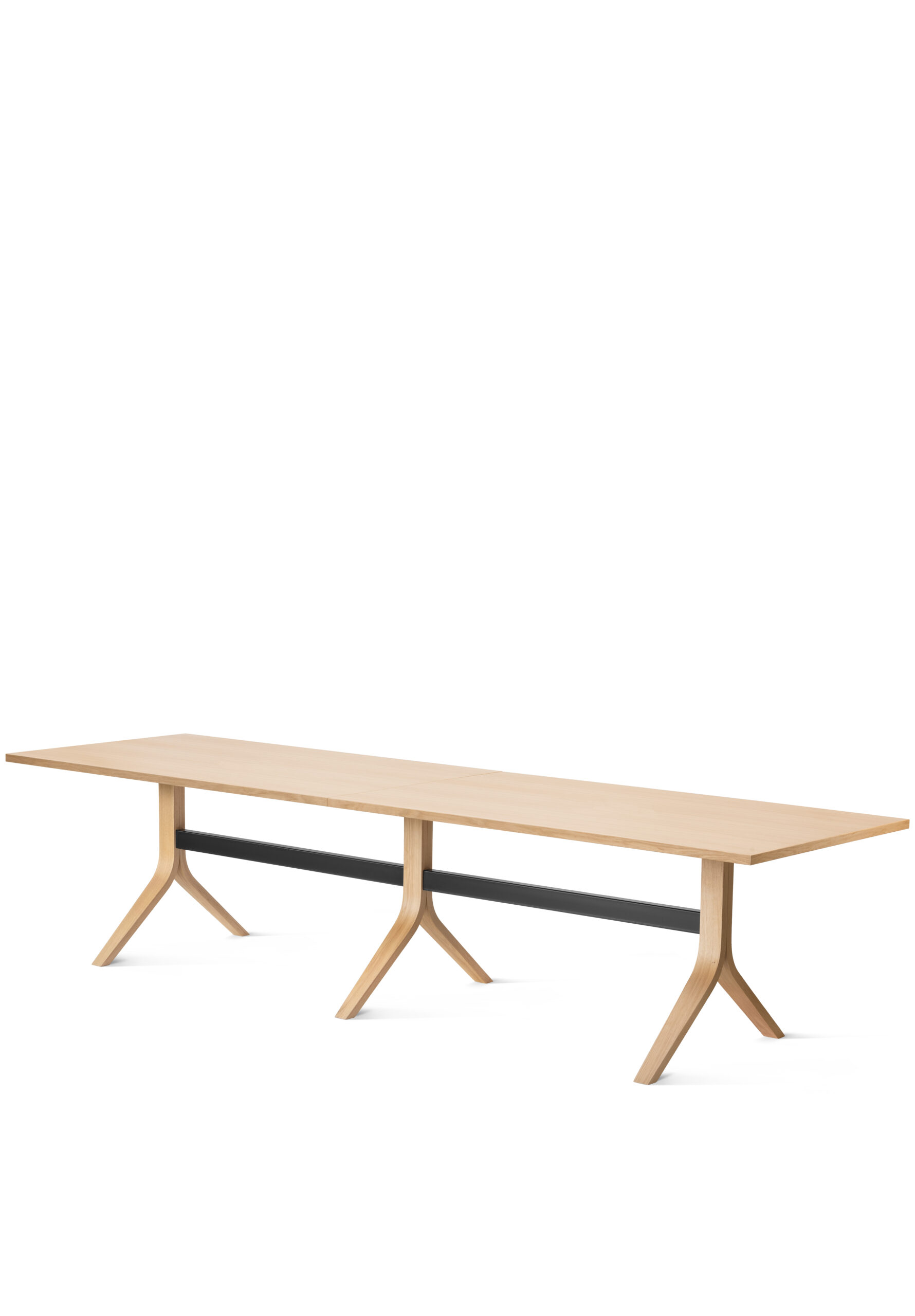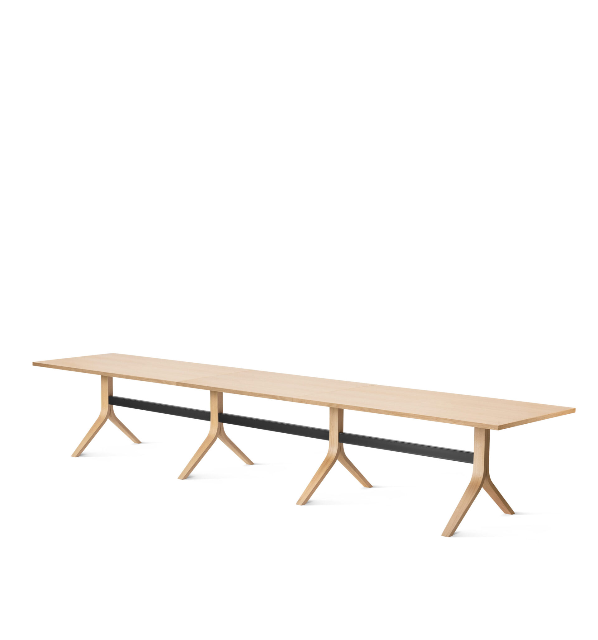 Modular tables made of natural wood. This is a new version of the HEY collection, which, in the LONG version, allows you to build tables of various lengths for conference rooms or workspaces. The tables feature a slot for an extension cord, accessible through a grommet in the tabletop. In the version without a cable grommet, the HEY LONG collection tables will work equally well in a contemporary home.