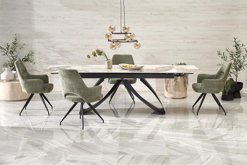 HILARIO prailginamasis stalas, baltas marmuras / juodas