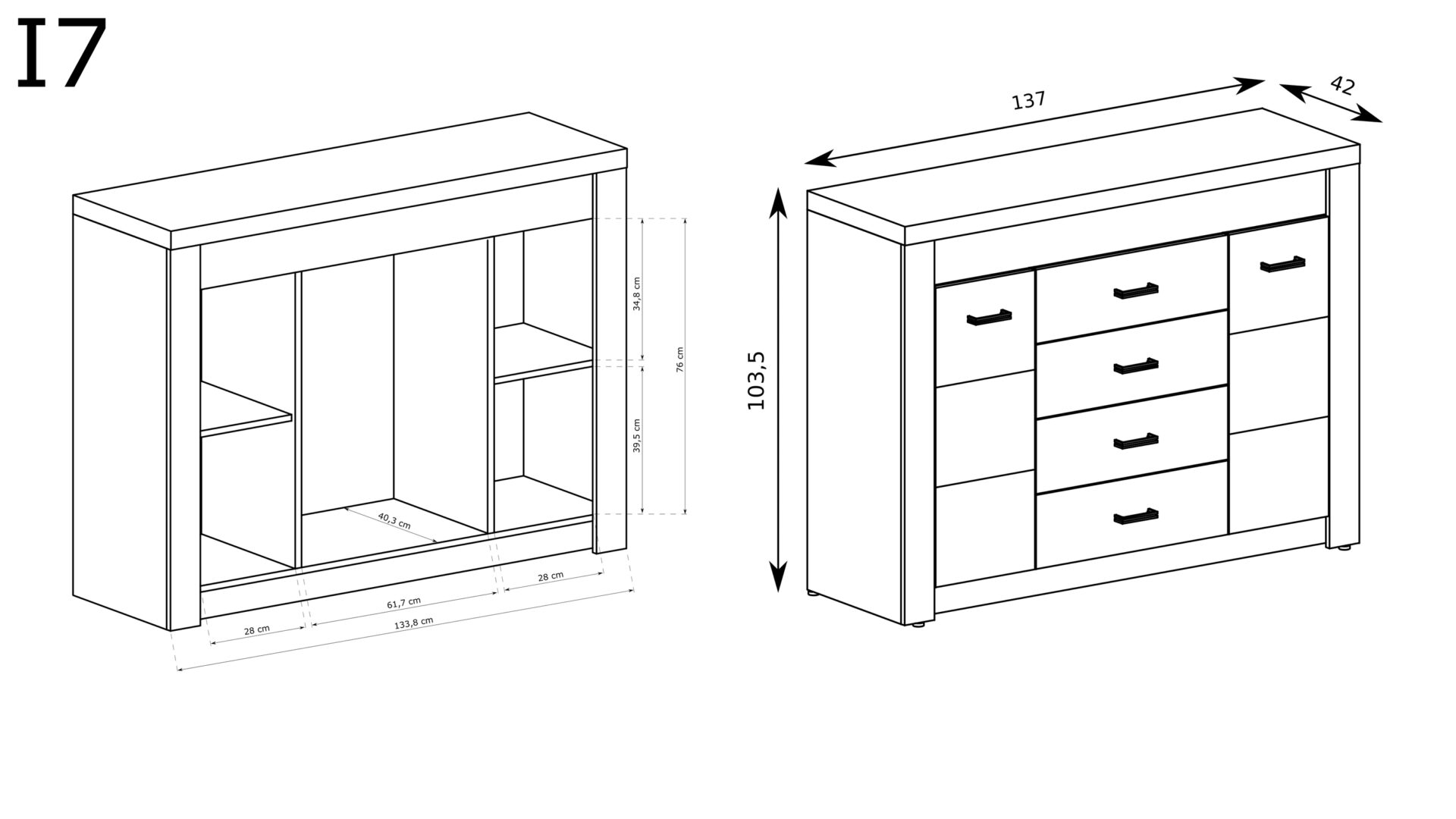 The INDIANAPOLIS-7 chest of drawers is a unique piece of furniture that will bring harmony and elegance to your interior. Crafted from light ash, its minimalist style catches the eye, blending seamlessly with a variety of décor. Its subtle finish and natural color will make any room brighter and more inviting, creating the perfect backdrop for other décor elements. Whether you place it in the bedroom, living room, or hallway, it will undoubtedly become the focal point of the space. Functionality is another advantage of the INDIANAPOLIS-7 chest of drawers. Equipped with four deep drawers and two cabinets with shelves, it offers ample space for all your belongings. This makes it easy to organize your clothes, accessories, books, and documents. The ability to store everything in one place makes it much easier to maintain order in your home, freeing you up for what truly matters. Details also matter, and the INDIANAPOLIS-7 metal handles demonstrate meticulous craftsmanship and quality. Their modern look beautifully complements the overall design and highlights the chest of drawers’ elegance. Solid metal hinges and guides add durability, ensuring this piece will last for years, even in everyday use. Lighting is available as an optional extra, purchased separately.