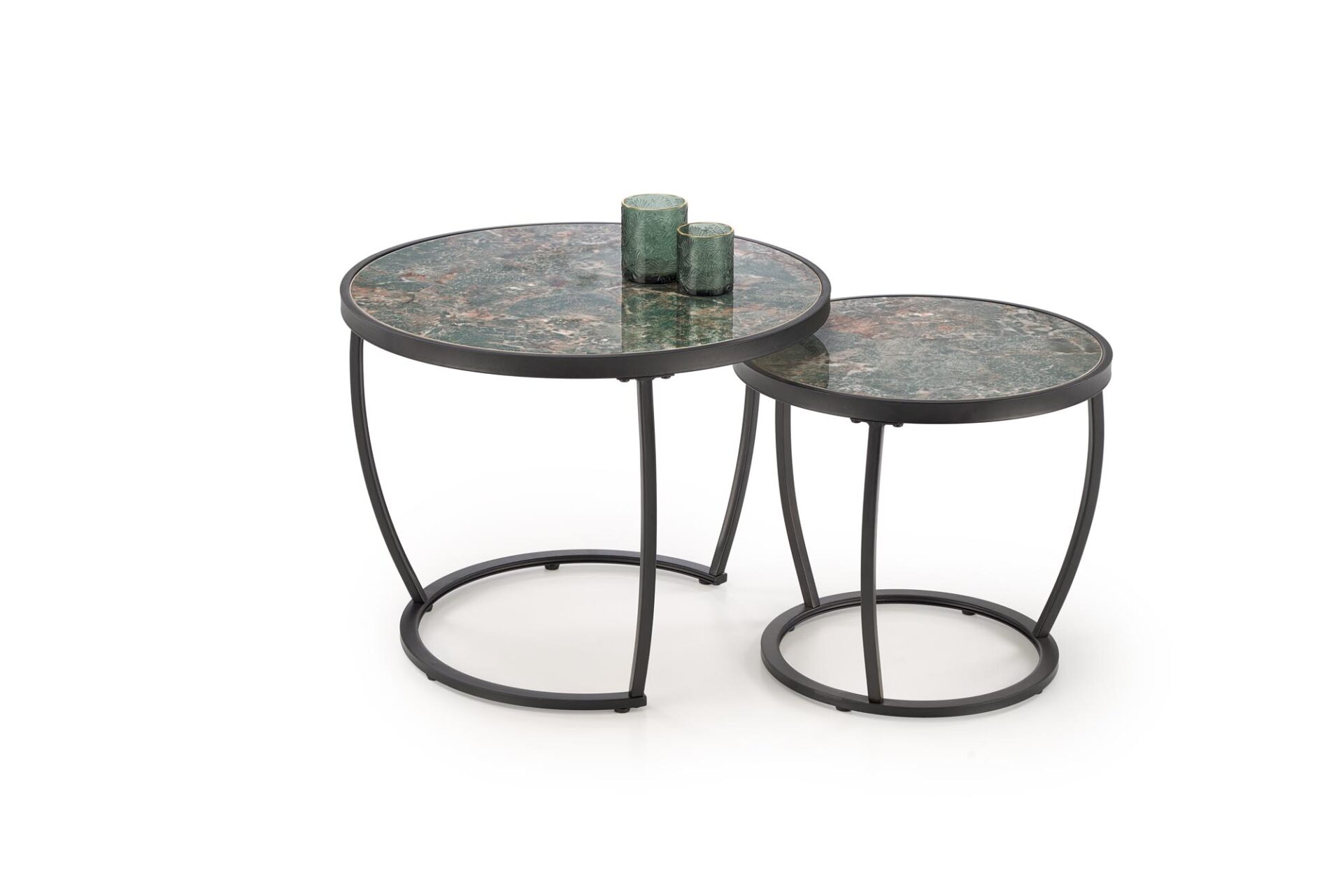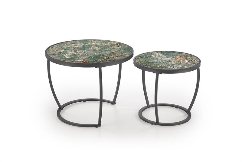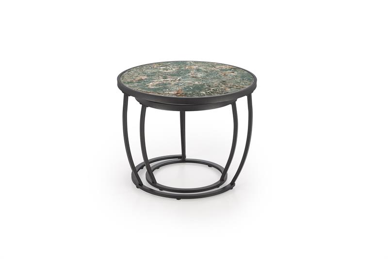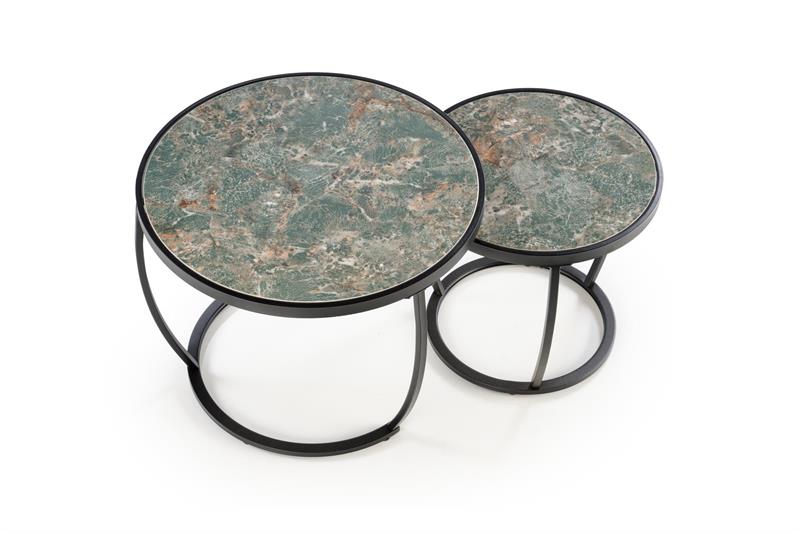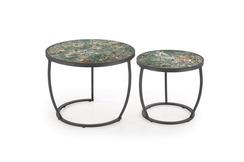INES dviejų kavos staliukų komplektas, žalias marmuras / juodas